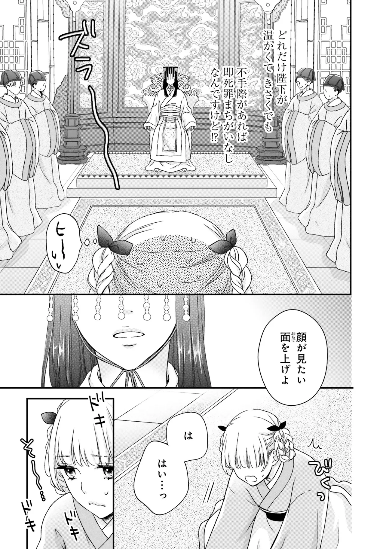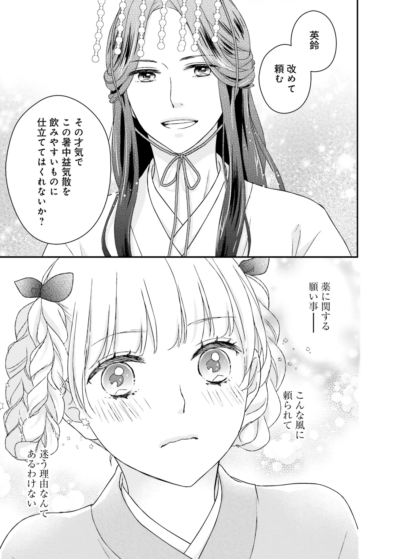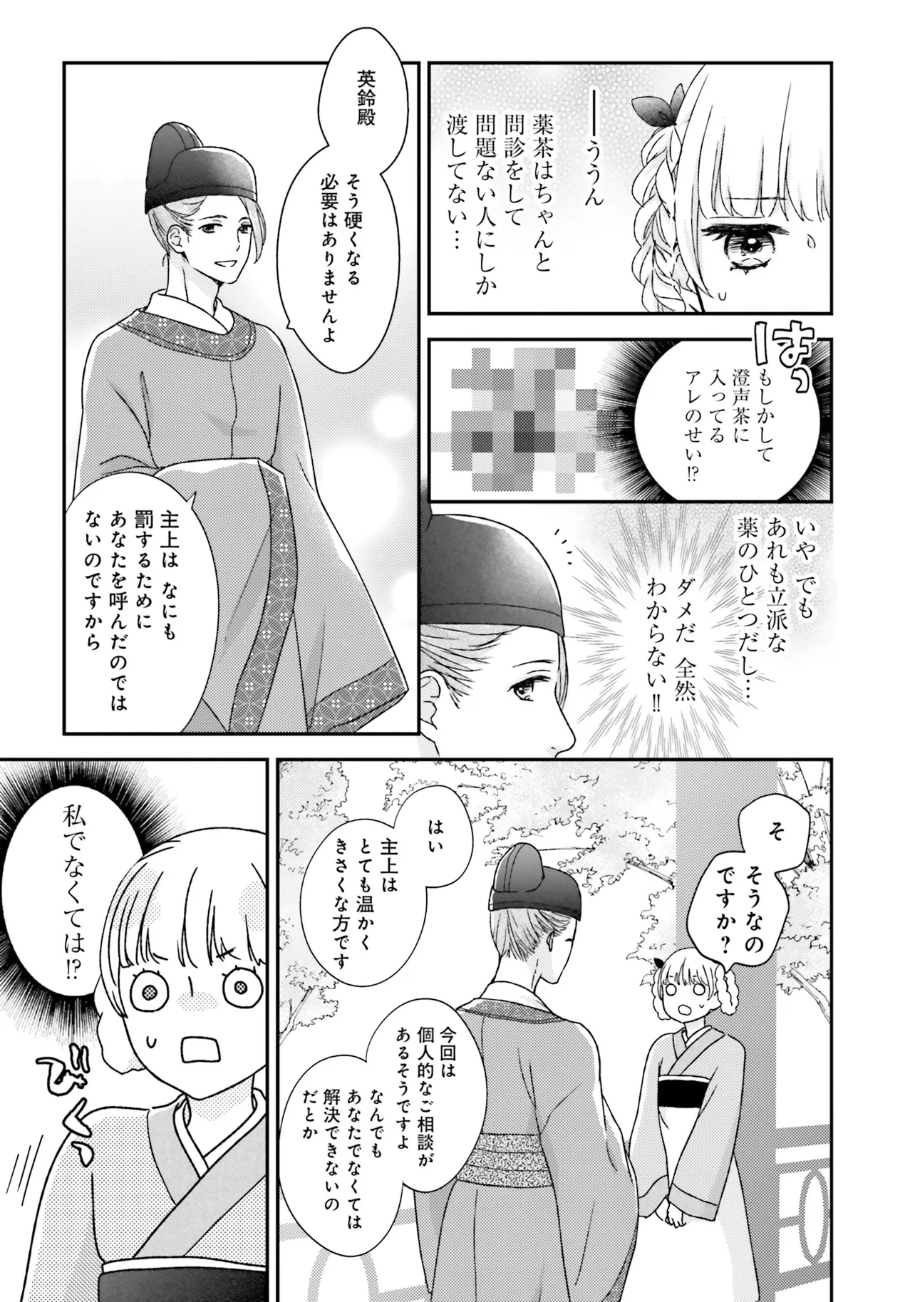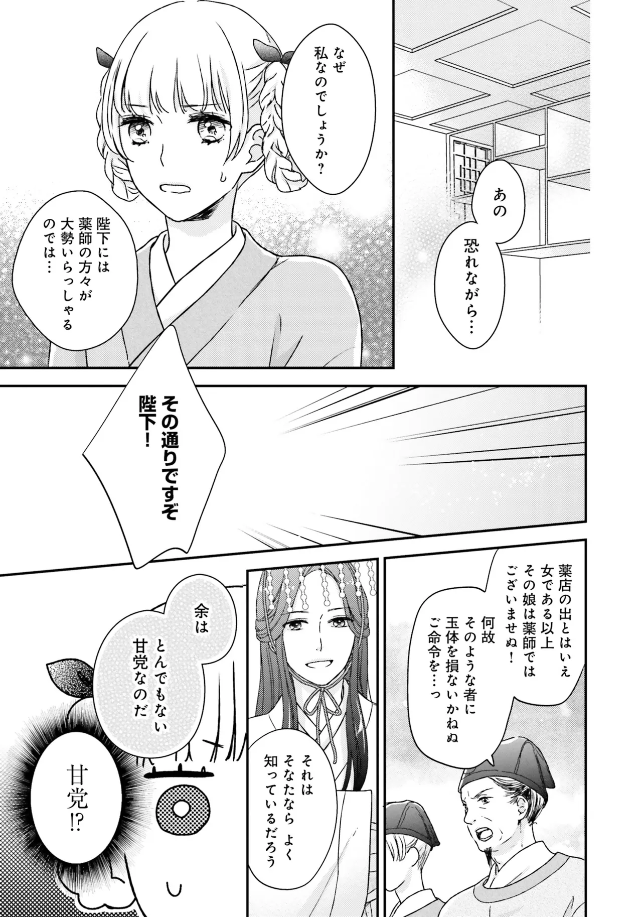 『不苦の良薬』――苦くない、誰でも飲みやすい良薬こそ至高。 後宮の官女・英鈴は、そう志して女だてらに薬師を目指している。 ある日、後宮で薬茶を売り始めると、珍しい処方に興味を持った皇帝から呼び出される。 すると、「甘党の余のために、苦い薬を飲みやすくしてほしい」と、皇帝専属のお薬係に任命された。 処方を気に入られた喜びも束の間、妃に昇格すると言われてしまい……? 「私が目指しているのは、妃ではなく薬師です!」 皇帝のお気に入りが「おいしい処方」を掲げて活躍する、中華おくすり物語!