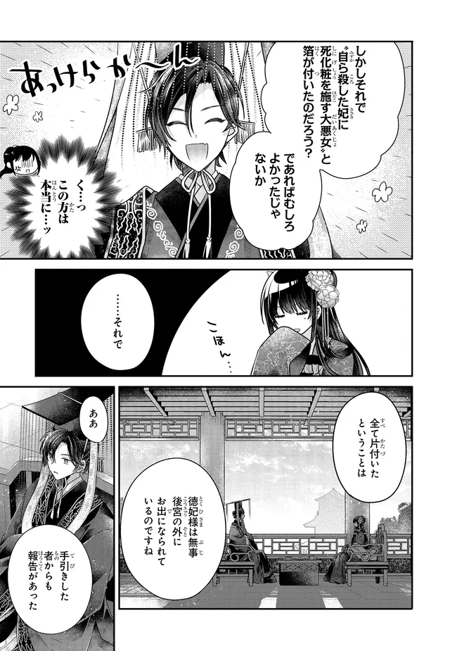 後宮一番の悪女 第20話③ 後宮一番の悪女 投稿者 admin - 8か月 前に 幸せな読書漫画 後宮一番の悪女 第20話③ , いいねと共有ボタンをクリックすることを忘れないでください. Manga 後宮一番の悪女 常に更新されます 無料コミック Comic Top. 他のマンガの更新を読むことを忘れないでください。 マンガコレクションのリスト 無料コミック Comic Top マンガリストメニューにあります. お友達と共有しましょう! Facebook Twitter Pinterest Whatsapp 前のエピソード すべての章 次のエピソード リスト ページング Loading.. 前のエピソード すべての章 次のエピソード リスト ページング お友達と共有しましょう! Facebook Twitter Pinterest Whatsapp お気に入りに追加に続く 4 人 後宮一番の悪女 地味顔の琳麗は化粧で化ける。 普段は地味で大人しい琳麗だが、化粧を施すと心まで彩られ、自信に溢れた絶世の美女となる。 化粧品を愛し、愛が高じて自身で開発した化粧品が都の人気商品になるほど、化粧品にのめり込む琳麗。 しかし、そのせいで婚期を逃しそうなを彼女を心配した父親の策略で、後宮に入れられてしまい――? 異色の痛快後宮恋愛ファンタジー開幕! 三廼(キャラクターデザイン)柚原テイル(原作)苗川采(漫画) forgirlsここではないどこかへコミカライズファンタジー中華ファンタジー化粧富士見L文庫後宮悪役令嬢高飛車