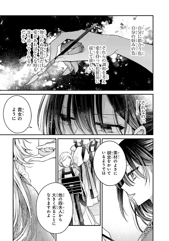 地味顔の琳麗は化粧で化ける。 普段は地味で大人しい琳麗だが、化粧を施すと心まで彩られ、自信に溢れた絶世の美女となる。 化粧品を愛し、愛が高じて自身で開発した化粧品が都の人気商品になるほど、化粧品にのめり込む琳麗。 しかし、そのせいで婚期を逃しそうなを彼女を心配した父親の策略で、後宮に入れられてしまい――? 異色の痛快後宮恋愛ファンタジー開幕!