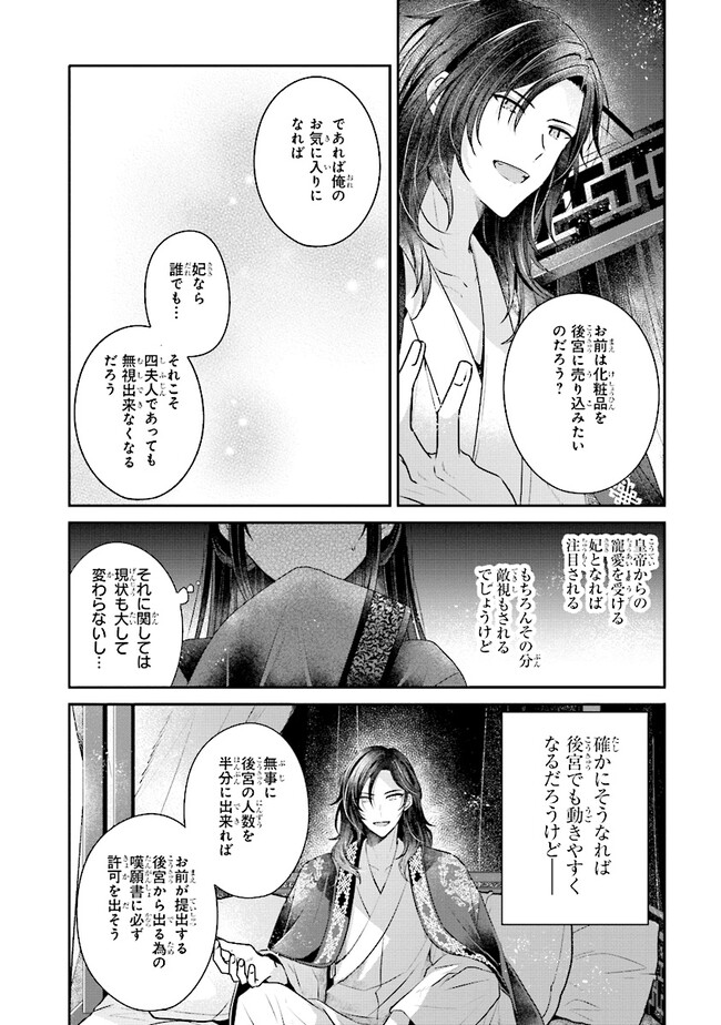 後宮一番の悪女 第9話① 後宮一番の悪女 投稿者 admin - 2年 前に 幸せな読書漫画 後宮一番の悪女 第9話① , いいねと共有ボタンをクリックすることを忘れないでください. Manga 後宮一番の悪女 常に更新されます 無料コミック Comic Top. 他のマンガの更新を読むことを忘れないでください。 マンガコレクションのリスト 無料コミック Comic Top マンガリストメニューにあります. お友達と共有しましょう! Facebook Twitter Pinterest Whatsapp 前のエピソード すべての章 次のエピソード リスト ページング Loading.. 前のエピソード すべての章 次のエピソード リスト ページング お友達と共有しましょう! Facebook Twitter Pinterest Whatsapp お気に入りに追加に続く 4 人 後宮一番の悪女 地味顔の琳麗は化粧で化ける。 普段は地味で大人しい琳麗だが、化粧を施すと心まで彩られ、自信に溢れた絶世の美女となる。 化粧品を愛し、愛が高じて自身で開発した化粧品が都の人気商品になるほど、化粧品にのめり込む琳麗。 しかし、そのせいで婚期を逃しそうなを彼女を心配した父親の策略で、後宮に入れられてしまい――? 異色の痛快後宮恋愛ファンタジー開幕! 三廼(キャラクターデザイン)柚原テイル(原作)苗川采(漫画) forgirlsここではないどこかへコミカライズファンタジー中華ファンタジー化粧富士見L文庫後宮悪役令嬢高飛車