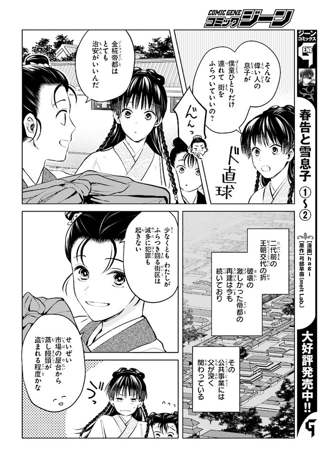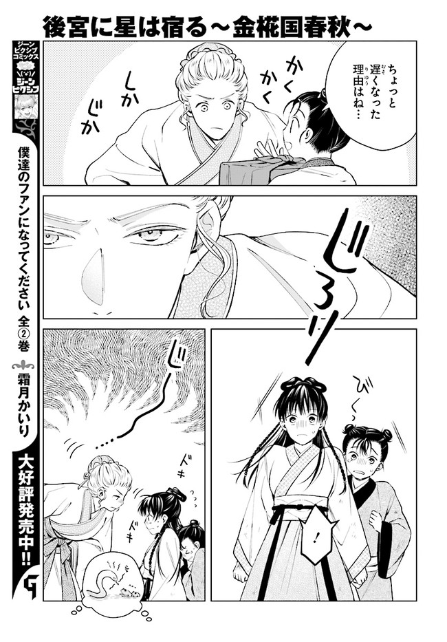 後宮に星は宿る ~金椛国春秋~ 第2話-① 後宮に星は宿る ~金椛国春秋~ 投稿者 admin - 4年 前に 幸せな読書漫画 後宮に星は宿る ~金椛国春秋~ 第2話-① , いいねと共有ボタンをクリックすることを忘れないでください. Manga 後宮に星は宿る ~金椛国春秋~ 常に更新されます 無料コミック Comic Top. 他のマンガの更新を読むことを忘れないでください。 マンガコレクションのリスト 無料コミック Comic Top マンガリストメニューにあります. お友達と共有しましょう! Facebook Twitter Pinterest Whatsapp 前のエピソード すべての章 次のエピソード リスト ページング Loading.. 前のエピソード すべての章 次のエピソード リスト ページング お友達と共有しましょう! Facebook Twitter Pinterest Whatsapp お気に入りに追加に続く 0 人 後宮に星は宿る ~金椛国春秋~ 金椛帝国の名門・星家は皇帝崩御に伴い、一族すべての殉死が決定。 体の弱い星家の御曹司である遊圭もその対象になったが、からくも逃げ延びた。 しかし、その身は追われることとなり…? 己の知恵を頼りに窮地を生き抜く、中華風ファンタジー!! hagi(漫画)篠原悠希(原作) forgirlsここではないどこかへコミカライズファンタジー中華後宮虚弱