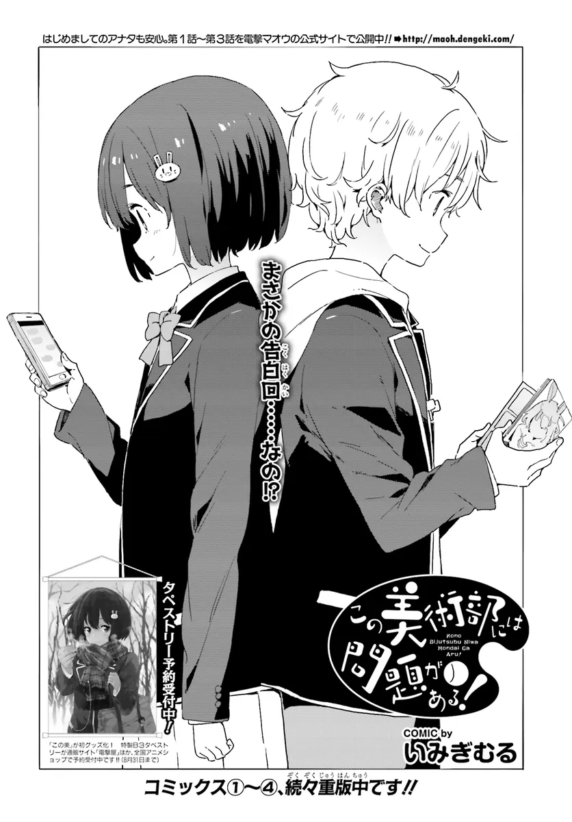 この美術部には問題がある! 34作品目 この美術部には問題がある! 投稿者 admin - 10か月 前に 幸せな読書漫画 この美術部には問題がある! 34作品目 , いいねと共有ボタンをクリックすることを忘れないでください. Manga この美術部には問題がある! 常に更新されます 無料コミック Comic Top. 他のマンガの更新を読むことを忘れないでください。 マンガコレクションのリスト 無料コミック Comic Top マンガリストメニューにあります. お友達と共有しましょう! Facebook Twitter Pinterest Whatsapp 前のエピソード すべての章 次のエピソード リスト ページング Loading.. 前のエピソード すべての章 次のエピソード リスト ページング お友達と共有しましょう! Facebook Twitter Pinterest Whatsapp お気に入りに追加に続く 0 人 この美術部には問題がある! とある中学のとある美術部。 そこには絵の才能に恵まれながら「理想の二次元嫁」を描くことにしか興味のない男子が1名。そして、そんな男子のことが気になってしまうマジメ女子が1名いました。 少し残念な2人を中心に、おかしな面々がそろった美術部は本日も活動中! 人気ボカロP・40mPとのコラボ楽曲『ココロ*パレット』もニコニコ動画で大好評配信中です! いみぎむる(著者) BOOK☆WALKERでセール中!!アニメ化学園モノ青春