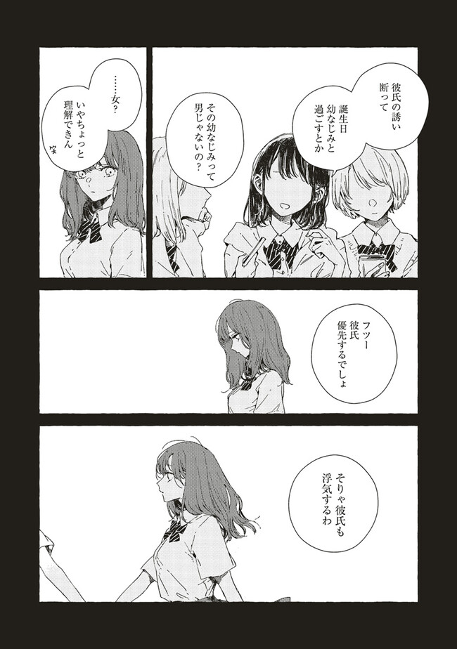 この恋を星には願わない 第8話① この恋を星には願わない 投稿者 admin - 2年 前に 幸せな読書漫画 この恋を星には願わない 第8話① , いいねと共有ボタンをクリックすることを忘れないでください. Manga この恋を星には願わない 常に更新されます 無料コミック Comic Top. 他のマンガの更新を読むことを忘れないでください。 マンガコレクションのリスト 無料コミック Comic Top マンガリストメニューにあります. お友達と共有しましょう! Facebook Twitter Pinterest Whatsapp 前のエピソード すべての章 次のエピソード リスト ページング Loading.. 前のエピソード すべての章 次のエピソード リスト ページング お友達と共有しましょう! Facebook Twitter Pinterest Whatsapp お気に入りに追加に続く 11 人 この恋を星には願わない 小さな頃からいつも一緒に過ごしてきた幼馴染の瑛莉ちゃん。 いつしか友達としての好きから恋愛としての好きに変わっていたが、私はこの想いを本人に伝えることはないだろう。 これからもずっと彼女のそばにいたいから―― それぞれの「好き」が交錯する、美しく淡いラブストーリー、開幕。 紫のあ(著者) forgirlsGLラブストーリー三角関係大学生学園モノ恋愛百合