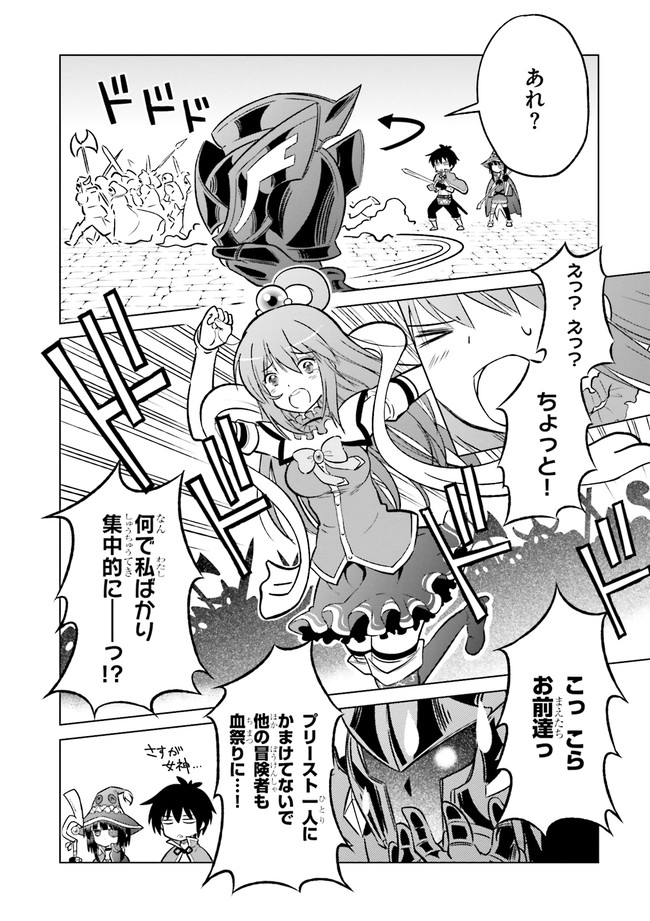この素晴らしい世界に祝福を! 第十章 この素晴らしい世界に祝福を! 投稿者 admin - 3年 前に 幸せな読書漫画 この素晴らしい世界に祝福を! 第十章 , いいねと共有ボタンをクリックすることを忘れないでください. Manga この素晴らしい世界に祝福を! 常に更新されます 無料コミック Comic Top. 他のマンガの更新を読むことを忘れないでください。 マンガコレクションのリスト 無料コミック Comic Top マンガリストメニューにあります. お友達と共有しましょう! Facebook Twitter Pinterest Whatsapp 前のエピソード すべての章 次のエピソード リスト ページング Loading.. 前のエピソード すべての章 次のエピソード リスト ページング お友達と共有しましょう! Facebook Twitter Pinterest Whatsapp お気に入りに追加に続く 0 人 この素晴らしい世界に祝福を! ゲーム大好きの引きこもりの少年・佐藤和真は事故で命を失い、その生涯の幕をあっさりと閉じた…と思いきや、女神と名乗る美少女に促されるままに異世界に転生してしまう。和真の魔王討伐への壮大な物語の幕開け…と思いきや、自らを転生させた女神・アクアや爆裂魔法が大好きなロリっ娘・めぐみん達と衣食住を充実させるための労働生活が始まって…!? 三嶋くろね(キャラクター原案)暁なつめ(原作)渡真仁(作画) アニメ化ギャグコミカライズコメディファンタジーラノベ原作勇者異世界異世界コミック異世界モノ美少女転生