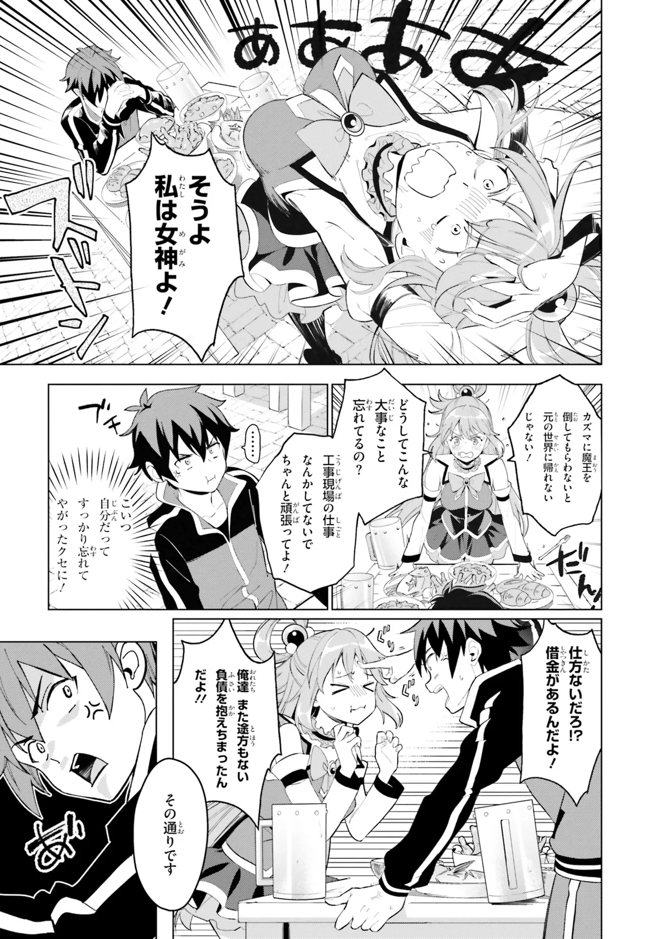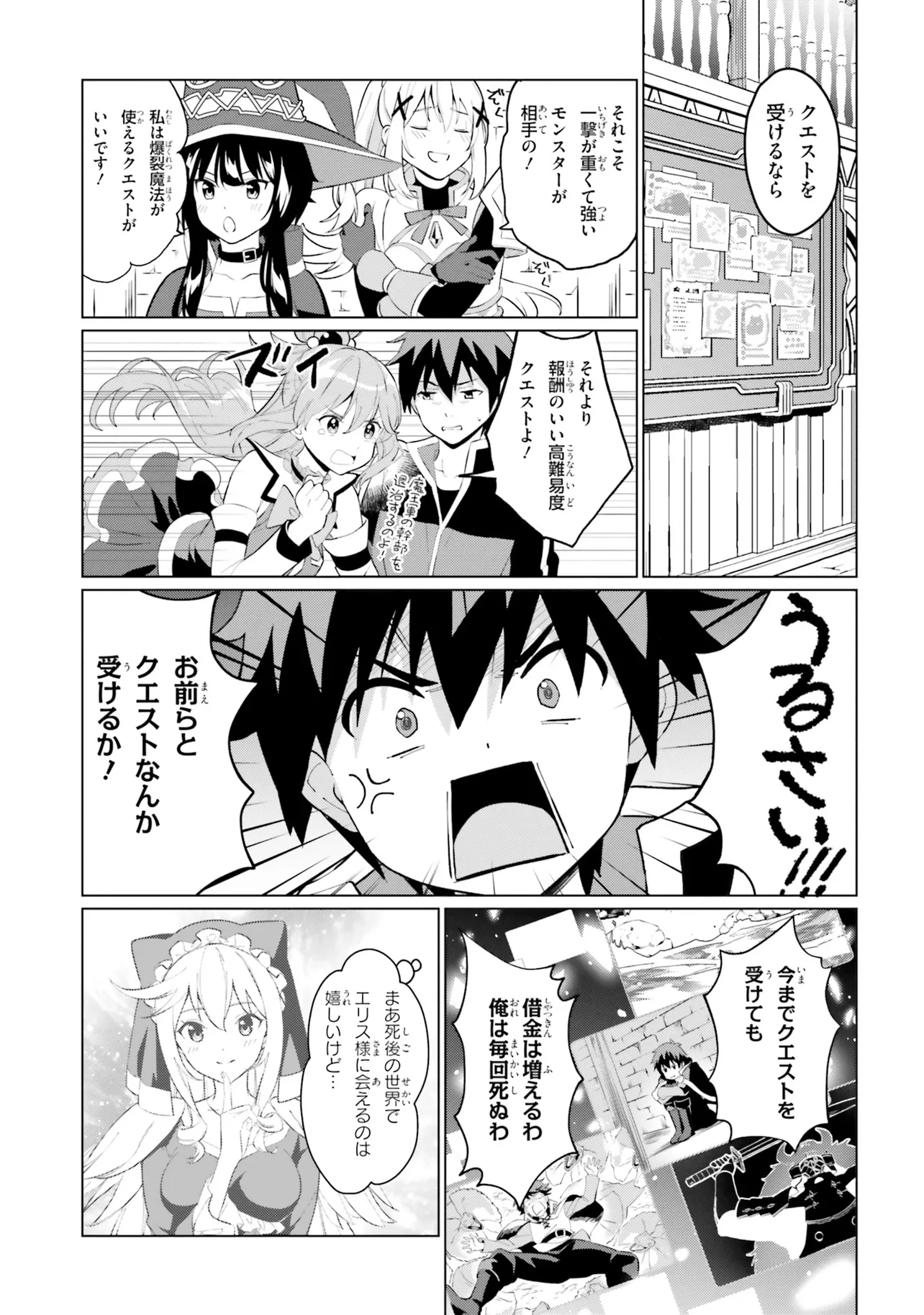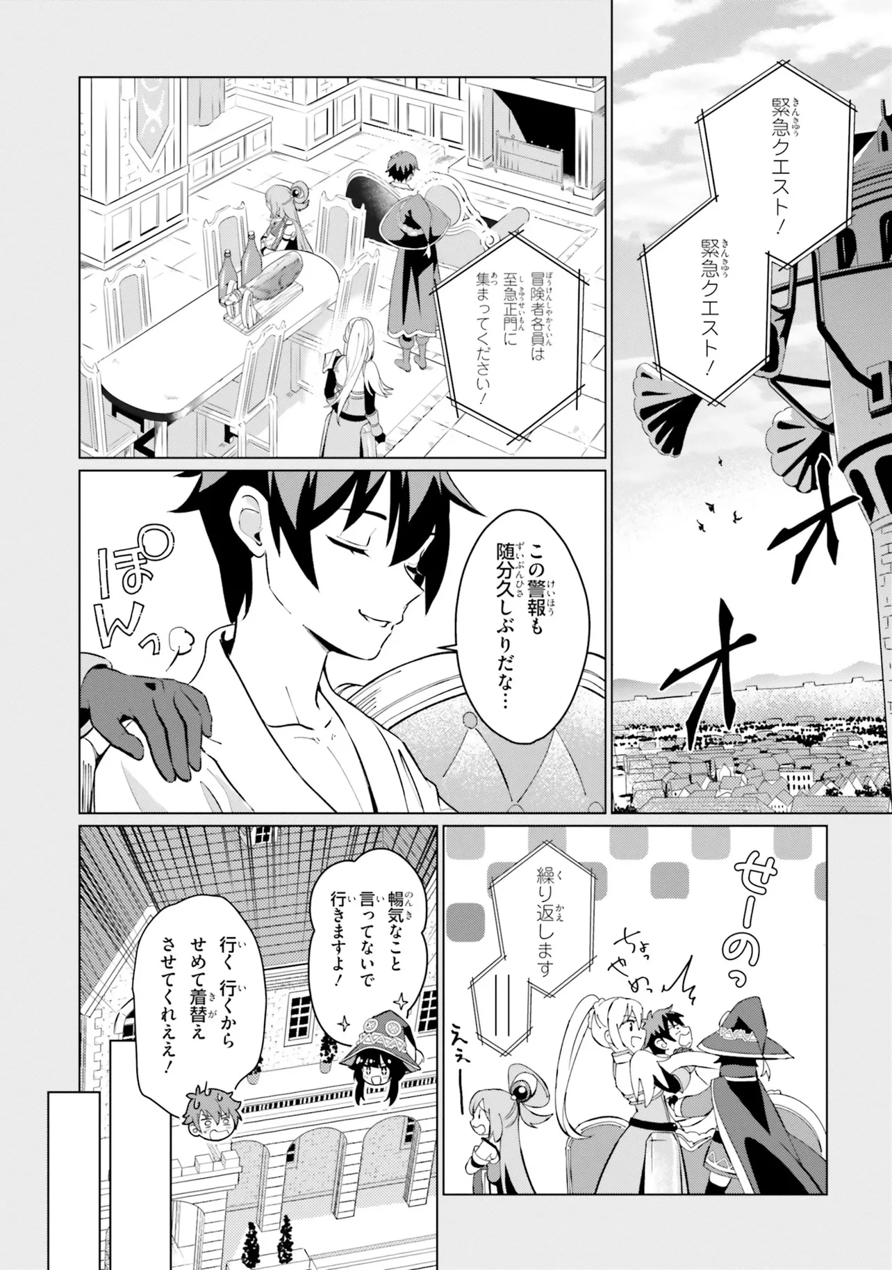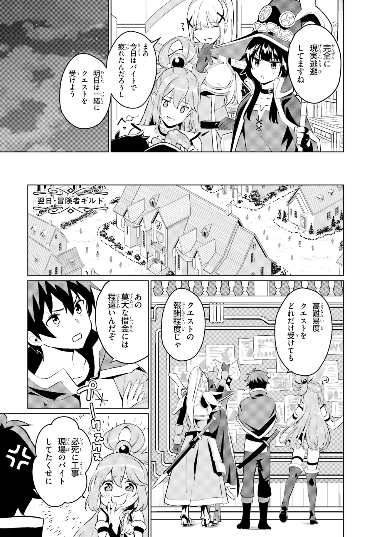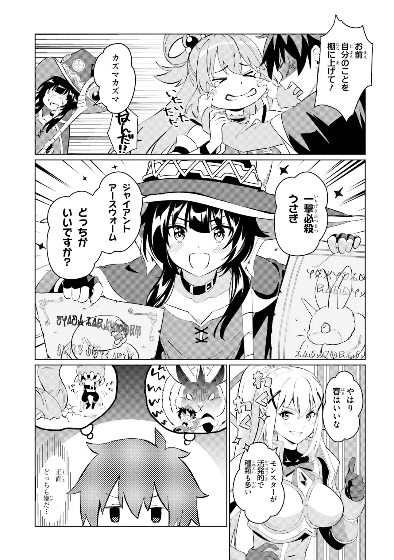相も変わらず自堕落な生活を送り続けるカズマはめぐみんやダクネスに引きずられるようにしてクエストに向かうも、