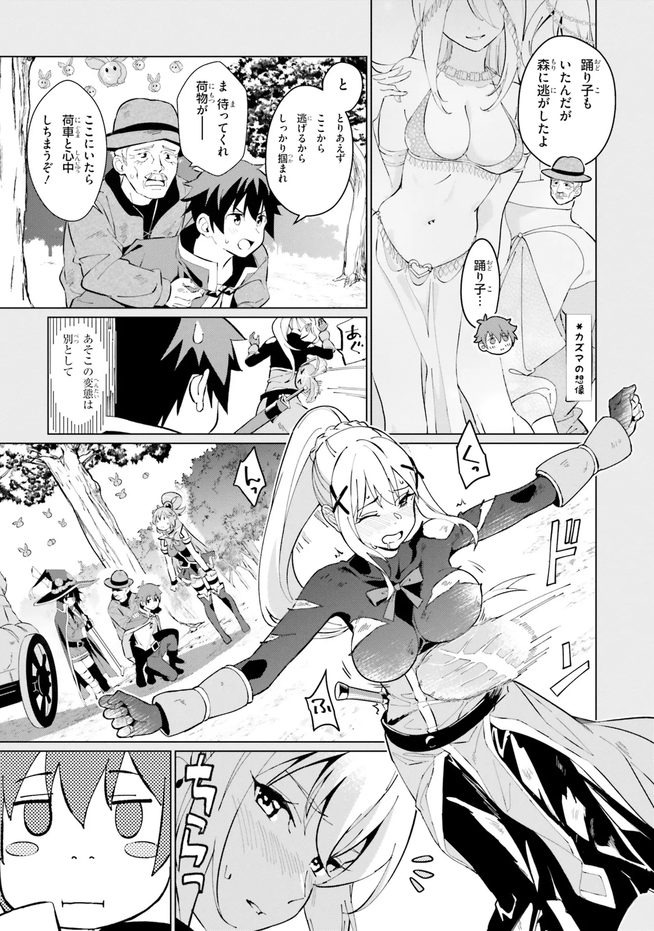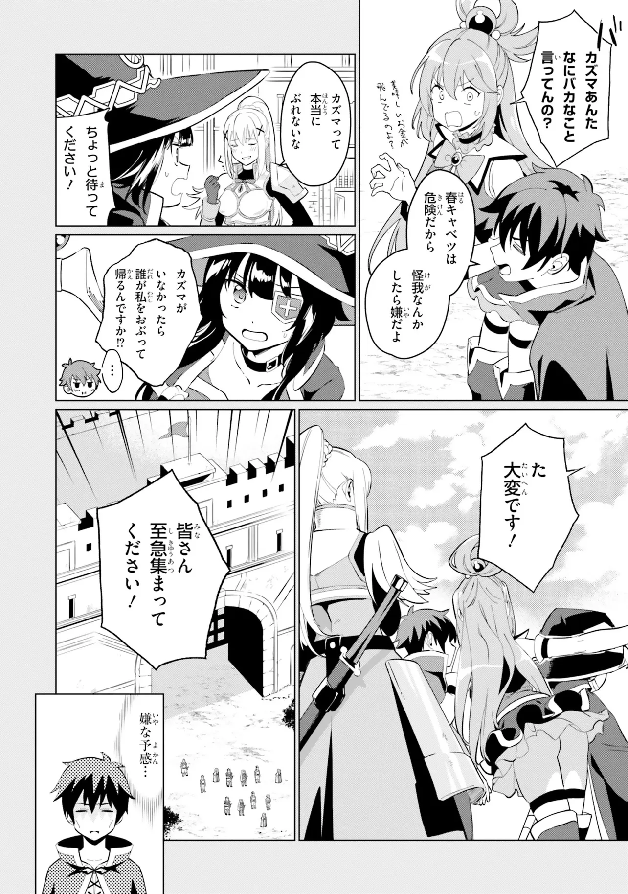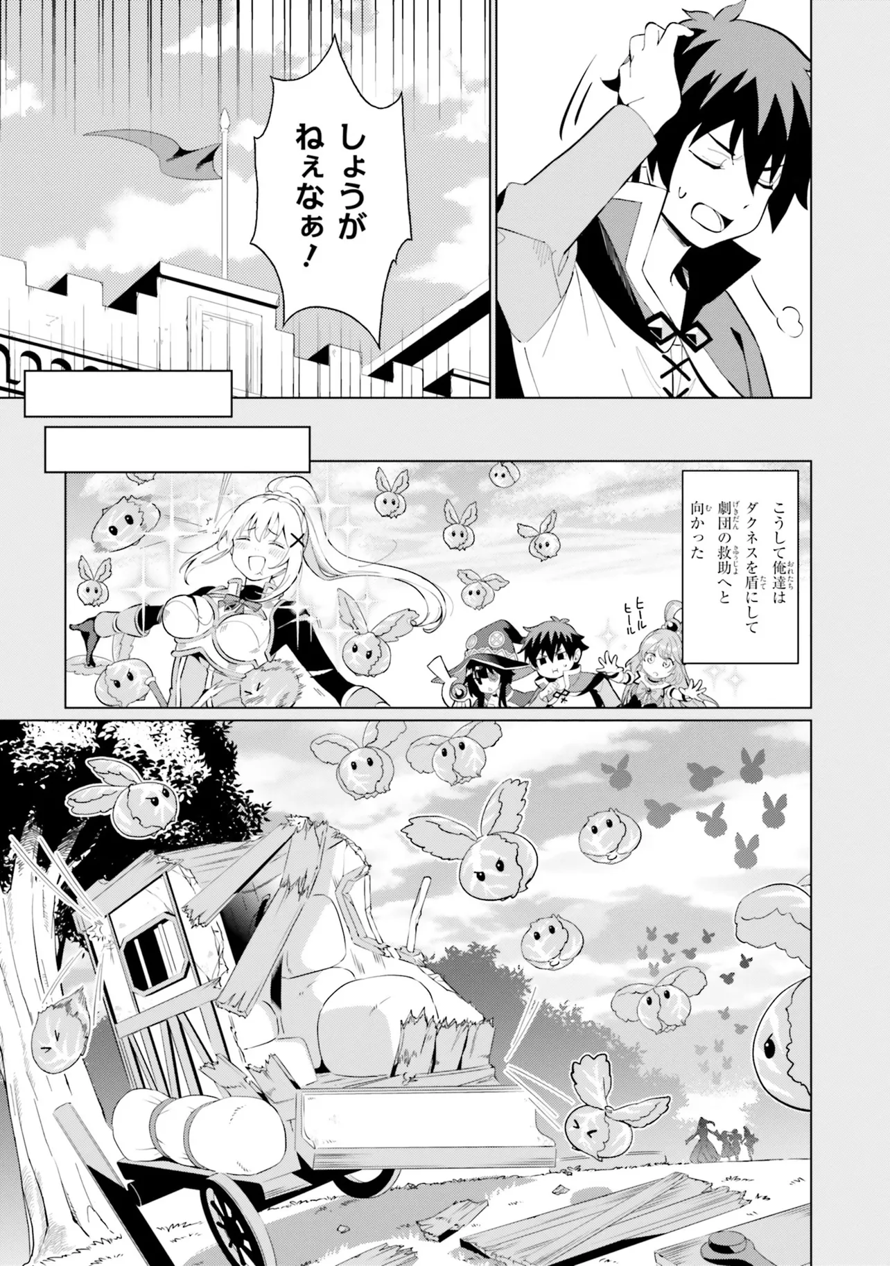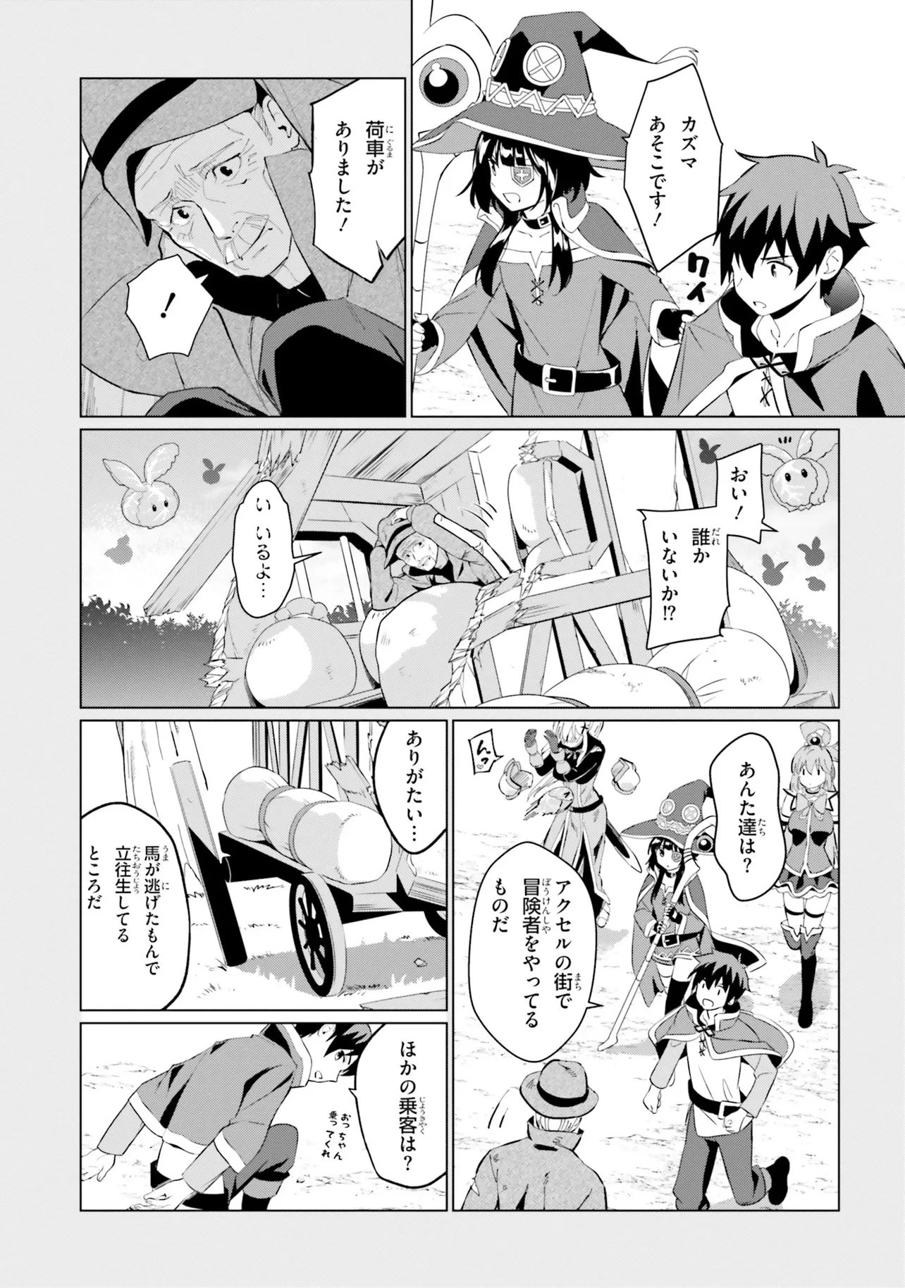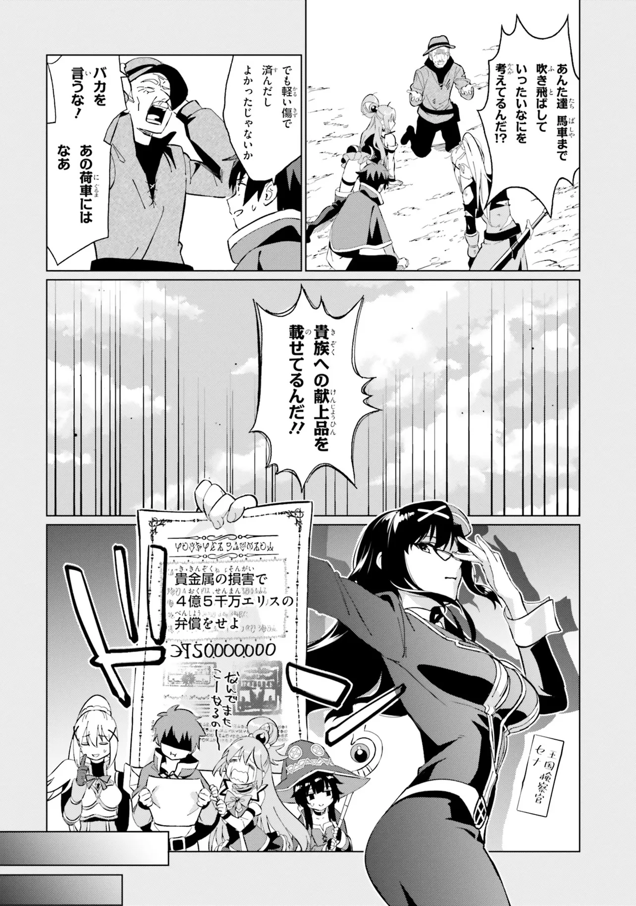 その最中、めぐみんの爆裂魔法によりとある一団を乗せた馬車を巻き込んでしまい――!?