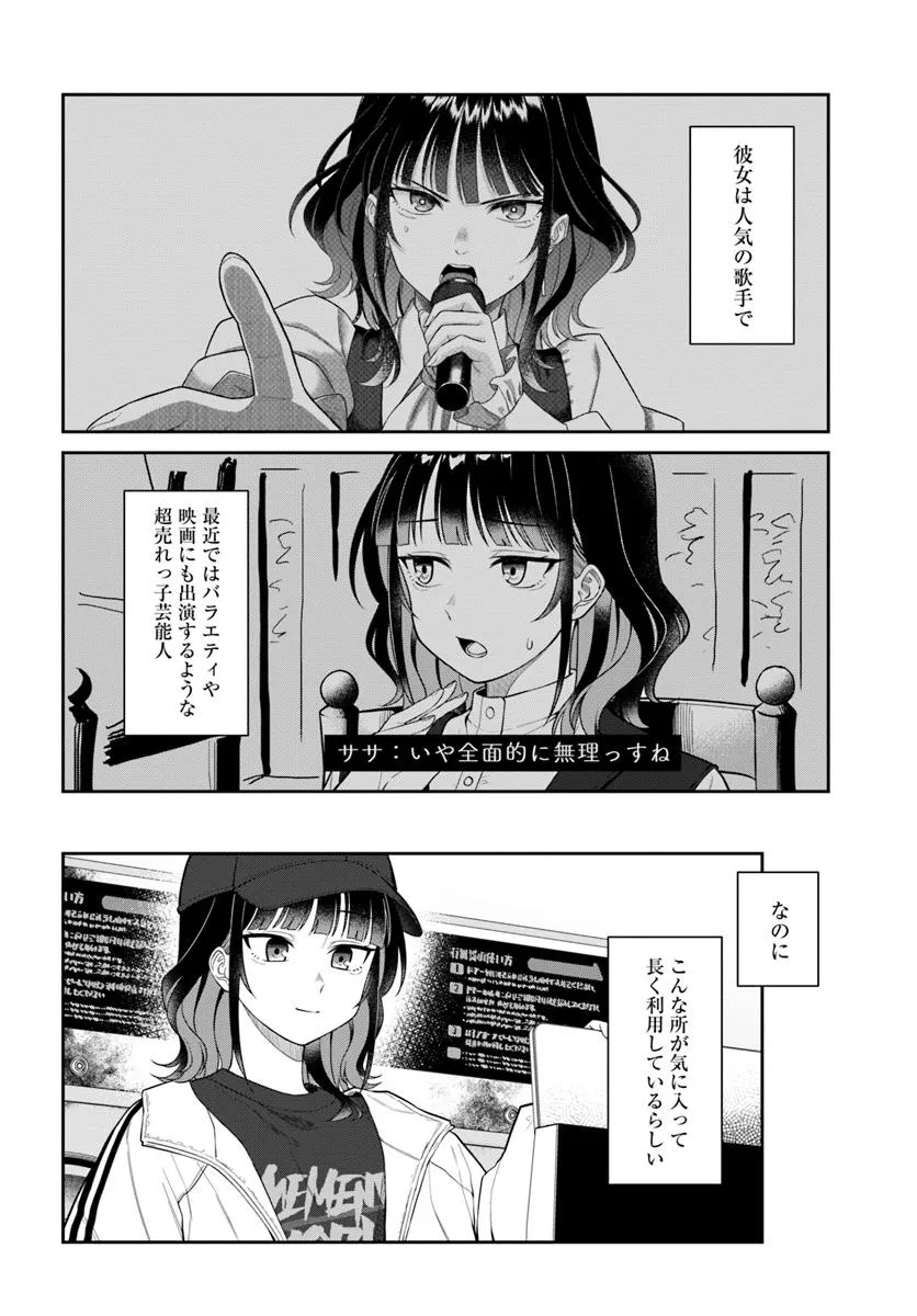 今夜コインランドリーで逢いましょう 第2話 今夜コインランドリーで逢いましょう 投稿者 admin - 7か月 前に 幸せな読書漫画 今夜コインランドリーで逢いましょう 第2話 , いいねと共有ボタンをクリックすることを忘れないでください. Manga 今夜コインランドリーで逢いましょう 常に更新されます 無料コミック Comic Top. 他のマンガの更新を読むことを忘れないでください。 マンガコレクションのリスト 無料コミック Comic Top マンガリストメニューにあります. お友達と共有しましょう! Facebook Twitter Pinterest Whatsapp 前のエピソード すべての章 次のエピソード リスト ページング Loading.. 前のエピソード すべての章 次のエピソード リスト ページング お友達と共有しましょう! Facebook Twitter Pinterest Whatsapp お気に入りに追加に続く 2 人 今夜コインランドリーで逢いましょう 仕事に追われる日々を送る三十路手前のファミレス社員成田は、 転職の面接結果に落ち込みながら、夕食中に動画サイトでオススメされた動画をぼんやりと眺めていた。そこに映っているのはクールですこし生意気な受け答えをしながらも、圧倒的なセンスと歌唱力を持つアーティスト、夜崎ササ。 その後、洗濯物のトラブルで訪れた古びたコインランドリーで、ふと目にした女性の姿に違和感を覚える。どこかで見たようなその人は、さっきまで動画で見ていたササ本人だった──。 ケンノジ藍原るりえ ほのぼのラブコメ日常系癒やされる