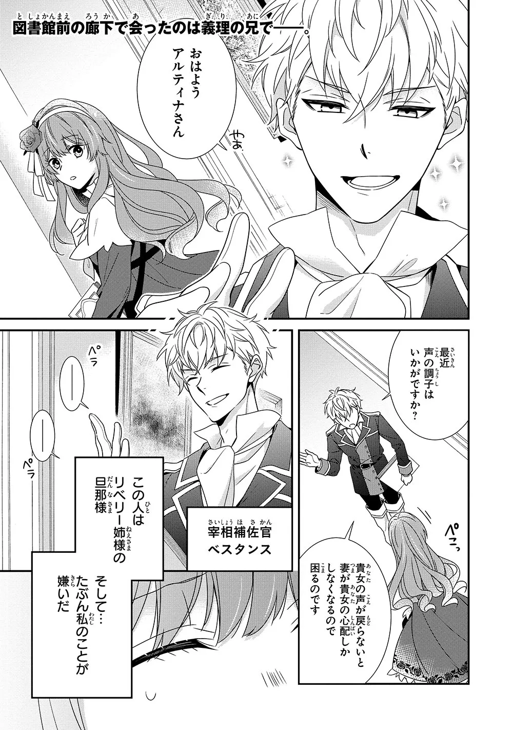 本が好きすぎて「理想の女性像」を押し付ける兄や姉の逃れるために、声を出さないとウソをついてしまうアルティナだが、そのウソがすぐに図書館の司書長のシジャルにバレてしまい――?