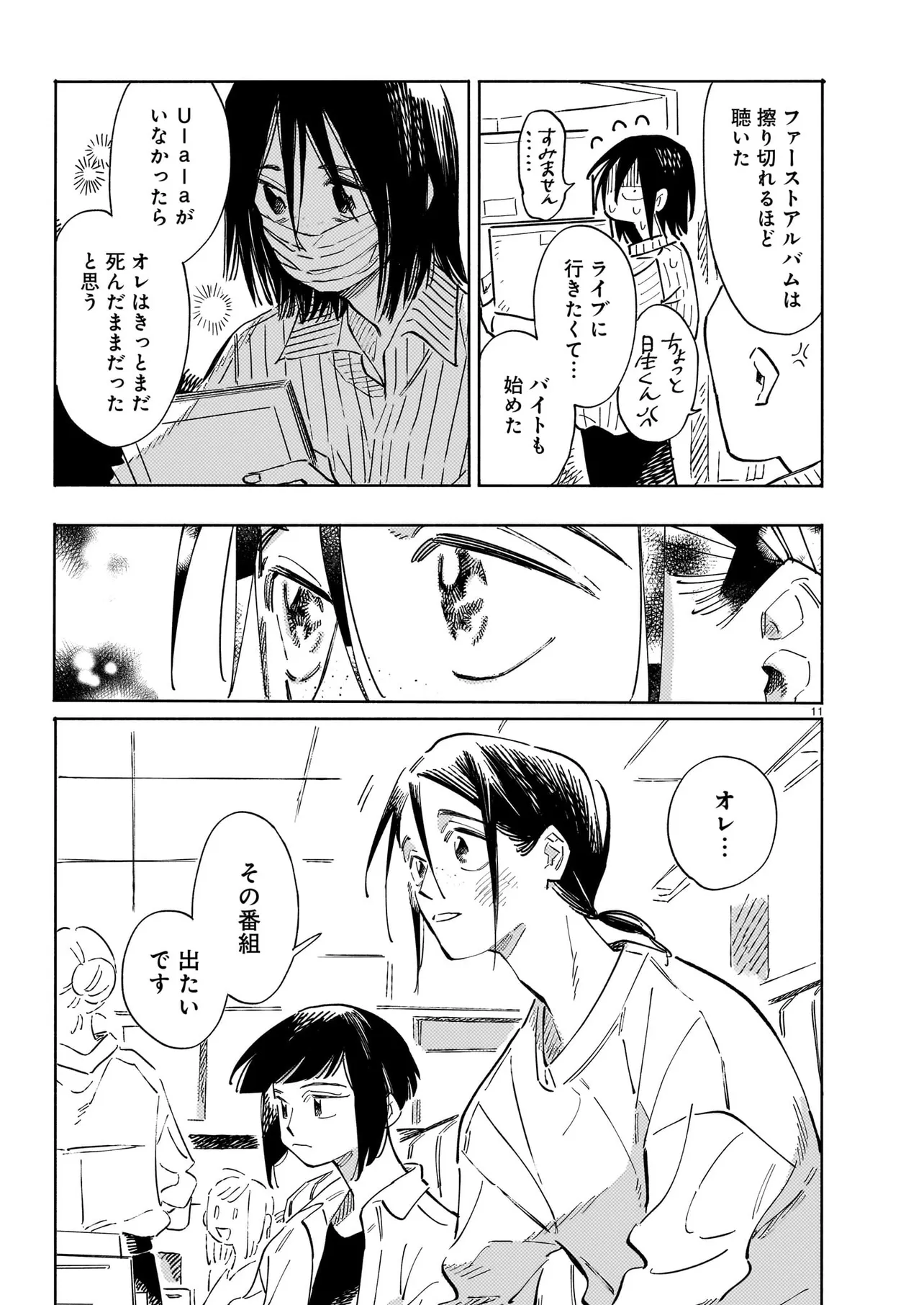 「音楽をやろう、星」元メンバー・烏間光は地に落ちたトップスター・星一に手を伸ばす。歌うと必ず吐いてしまう星はトラウマを克服し再び舞台にあがることができるのか。歌で今から這い上がれ!下剋上ソング物語!