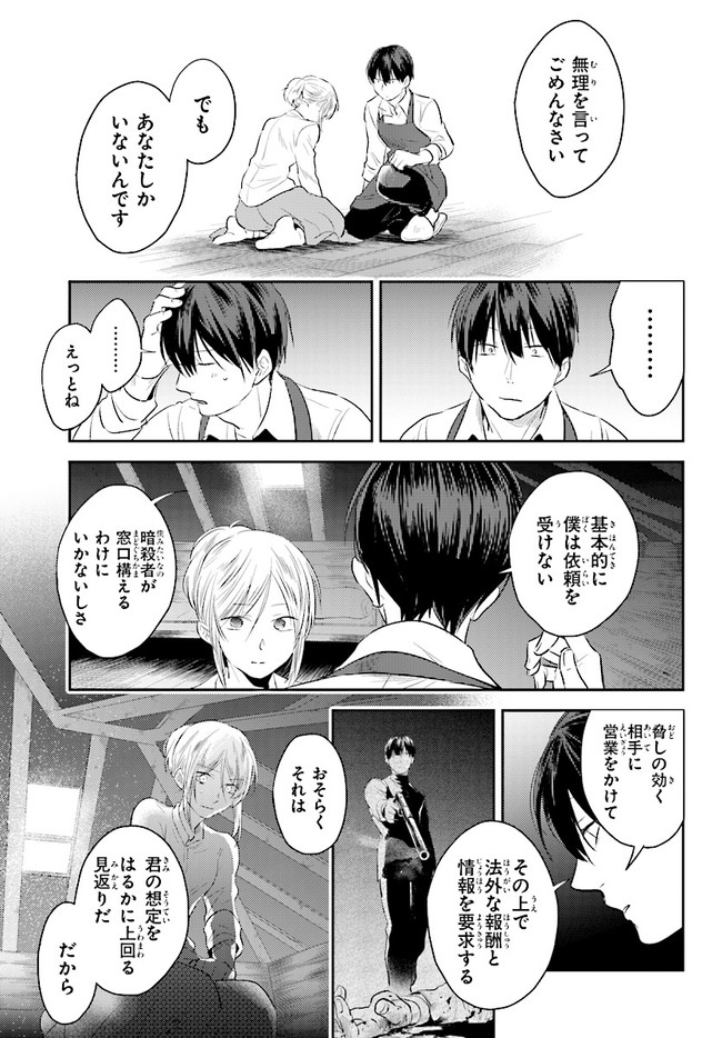 殺し屋組織に属する女性賞金稼ぎのシャトーは、ある日の現場で、謎の賞金稼ぎ・リャンハと鉢合わせる。圧倒的な実力差を見せつけられて万事休すかと思われたが、リャンハが要求してきたのは連絡先の交換。そしてその日から、リャンハにストーキングされる日々が始まった…。Pixiv閲覧数100万突破の殺し屋サスペンス。