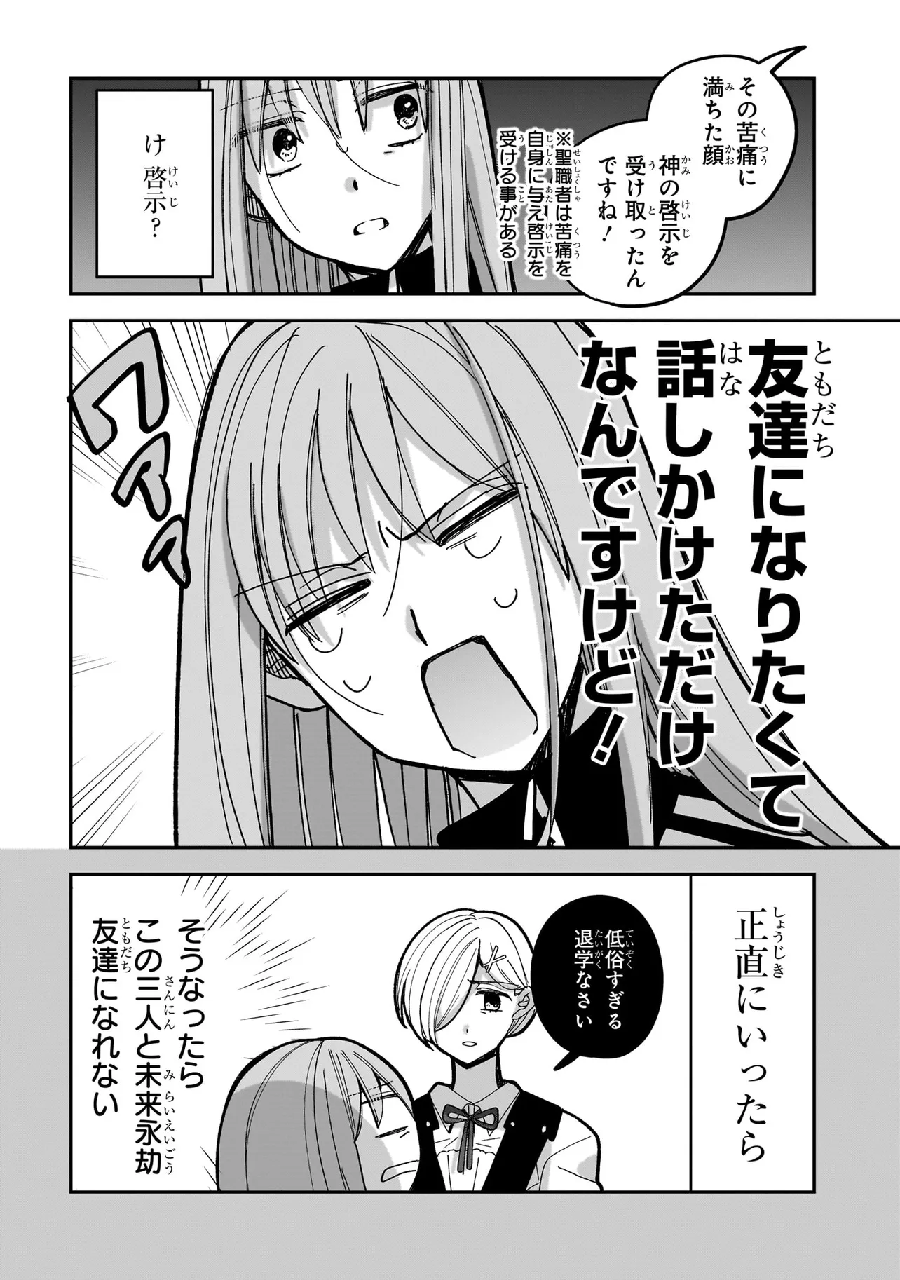 ぼっちな中学時代を過ごし、高校ではリア充生活を夢見る少女、コハク。だが入学初日に階段から足を滑らせてしまい、1か月入院することに!そうなると学校での友達グループも出来上がってしまっているわけで…。ぼっち回避のために勇気を出してクラス唯一の奇数人グループに声をかけるも、なんだかスクールカーストめっちゃ高そう&実は人外混じりの百合百合血で血を洗う三角関係しており…!?目指せぼっち脱出ハイテンションハイスクールコメディ!