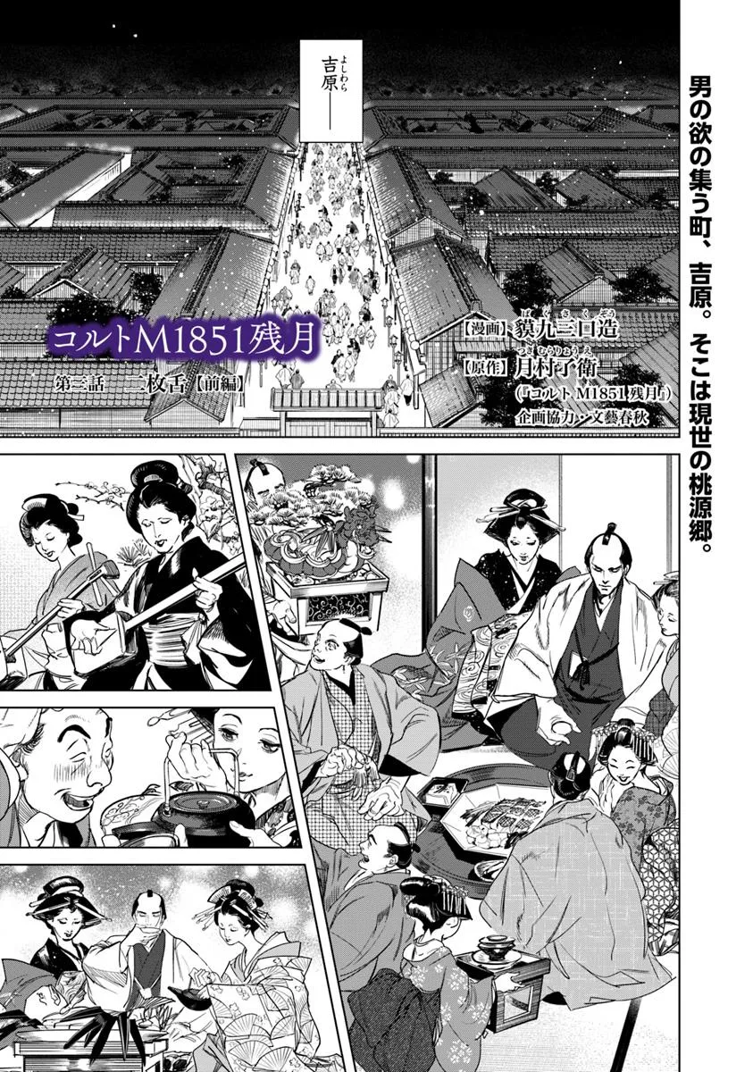 懐に隠すは黒鉄の銃。 心に宿すは漆黒の魂。 舞台は1853年の江戸。 「残月」の通り名を持つ男・郎次は廻船問屋『三多加屋』を仕切る若き番頭。 将来を嘱望される郎次の裏の顔は、江戸の暗黒街を支配する札差・儀平一派の大幹部だった。 組織の中で成り上がりを目論む郎次の武器は、当時最新鋭の回転式拳銃・コルトM1851ネイビー! 鍛え抜かれた銃捌きと持ち前の度胸で、郎次は江戸の暗黒街でのし上がろうとする。 大人気小説家・月村了衛(『機龍警察』『土漠の花』)の名作ノワールサスペンスを、超絶画力の新鋭・貘九三口造(『ABURA』)がコミカライズ!