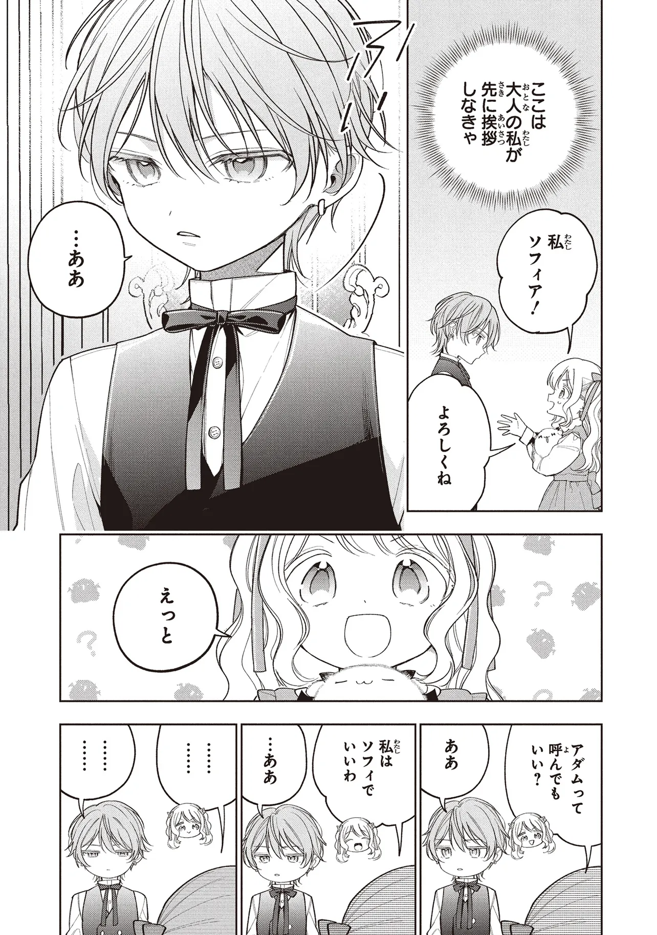 魔塔のブラックな職場環境で過労死寸前の子爵令嬢・ソフィアは、心の支えだった魔法使いのドウェインが実は裏で虐げることを指示していたことを知り絶望、脱走を決意して子どもになる薬を開発する。幼女化して逃げ出した先で待っていたのは、ソフィアを養女として迎え入れてくれ、溺愛してくれるお兄様お父様によるとんでもない好待遇と働かなくてもいい生活だったーー。うってかわって幸せすぎる毎日を過ごしている最中、公爵家でしばらく預かることになったという幼女化したソフィアと同年代のアダムという男の子がやってきて…!「子どもになった令嬢」×「子どもになった公爵令息」による溺愛ラブコメ!