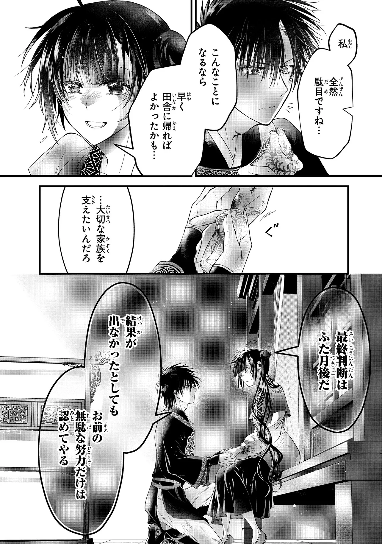 ド田舎娘の雨蘭は、家族を支えるべく上京するも仕事にありつけず、がっつり路頭に迷っていた。そんな彼女がたどり着いたのは、皇帝廟の管理人の選考会…と思いきや、そこで“選考”されるのは皇太子の「花嫁候補」で!?