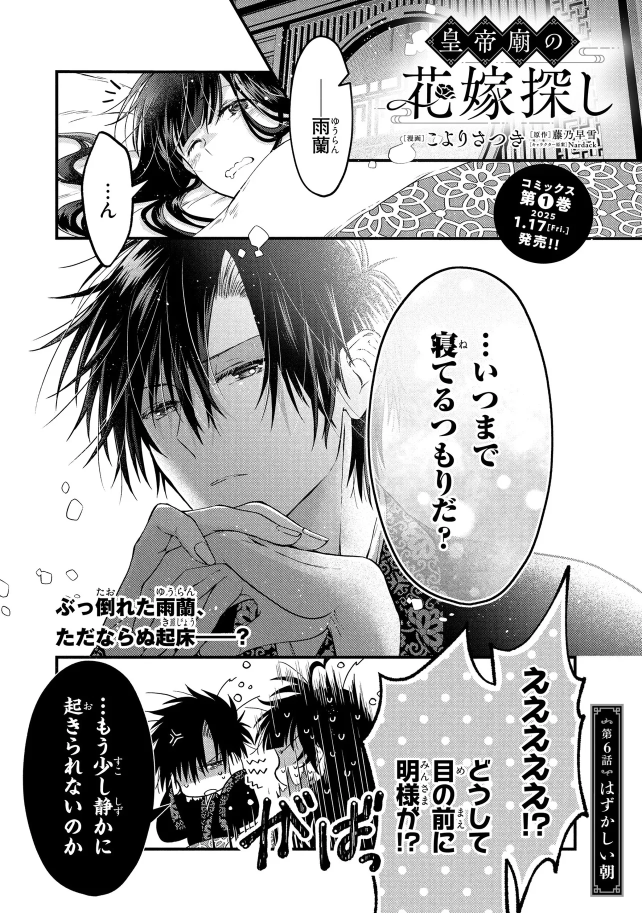 ド田舎娘の雨蘭は、家族を支えるべく上京するも仕事にありつけず、がっつり路頭に迷っていた。そんな彼女がたどり着いたのは、皇帝廟の管理人の選考会…と思いきや、そこで“選考”されるのは皇太子の「花嫁候補」で!?