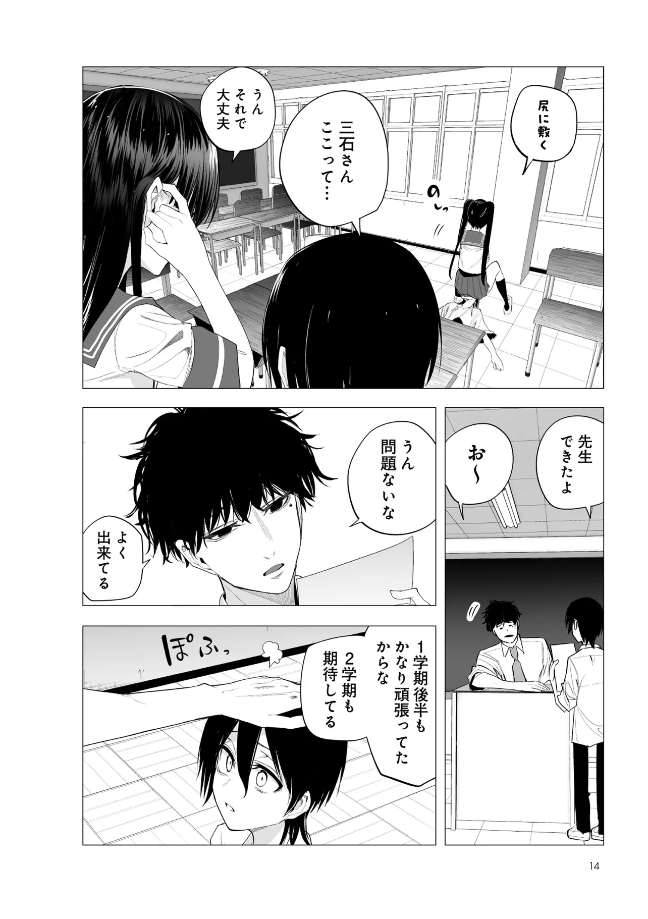 怪我が原因で部活を行かなくなった主人公・目黒は、いつも図書室でサボっていた。そこには、司書の大石先生がいて、周りに関心がないのか変に干渉してこないし、心が安らぐ場所だった。ある日、目黒が持っていた退部届を大石先生が拾って
