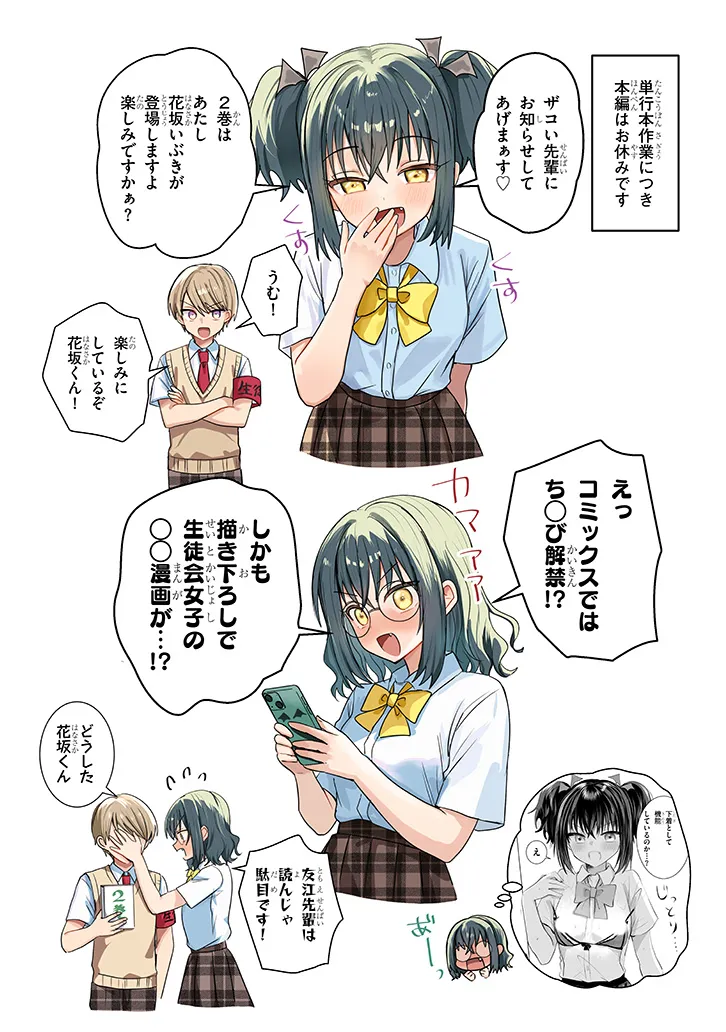 いろいろでっかい会長は頼まれると断れない。 生徒のためになることなら何でも一生懸命叶えてあげようとしてしまうので、 副会長の友江くんは度が過ぎないように阻止する。 でも会長は友江くんからだけはえっちなお願いをされたくて…。