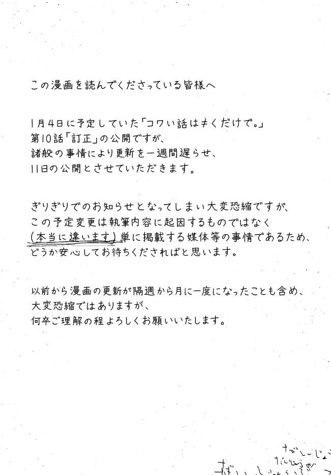 コワい話は≠くだけで。 10話更新延期のお知らせ
