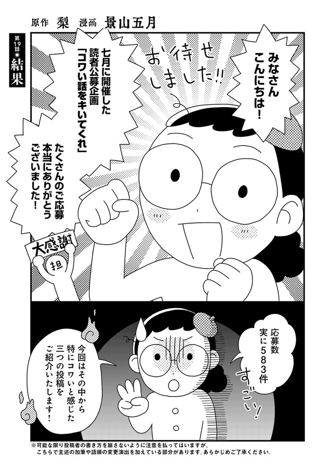 コワい話は≠くだけで。 第19話 コワい話は≠くだけで。 投稿者 admin - 2年 前に 幸せな読書漫画 コワい話は≠くだけで。 第19話 , いいねと共有ボタンをクリックすることを忘れないでください. Manga コワい話は≠くだけで。 常に更新されます 無料コミック Comic Top. 他のマンガの更新を読むことを忘れないでください。 マンガコレクションのリスト 無料コミック Comic Top マンガリストメニューにあります. お友達と共有しましょう! Facebook Twitter Pinterest Whatsapp 前のエピソード すべての章 次のエピソード リスト ページング Loading.. 前のエピソード すべての章 次のエピソード リスト ページング お友達と共有しましょう! Facebook Twitter Pinterest Whatsapp お気に入りに追加に続く 0 人 コワい話は≠くだけで。 ひょんなことから怪談を集めることになった一人の漫画家。 日常のすぐそばにある闇や恐怖、その収集の果てに行きつく先とは―――!? 景山五月(漫画)梨(原作) COMIC BRIDGEオカルトオリジナルコミックブリッジゾクゾクしちゃうホラー夢見る少女じゃいられない大人向け女性向け