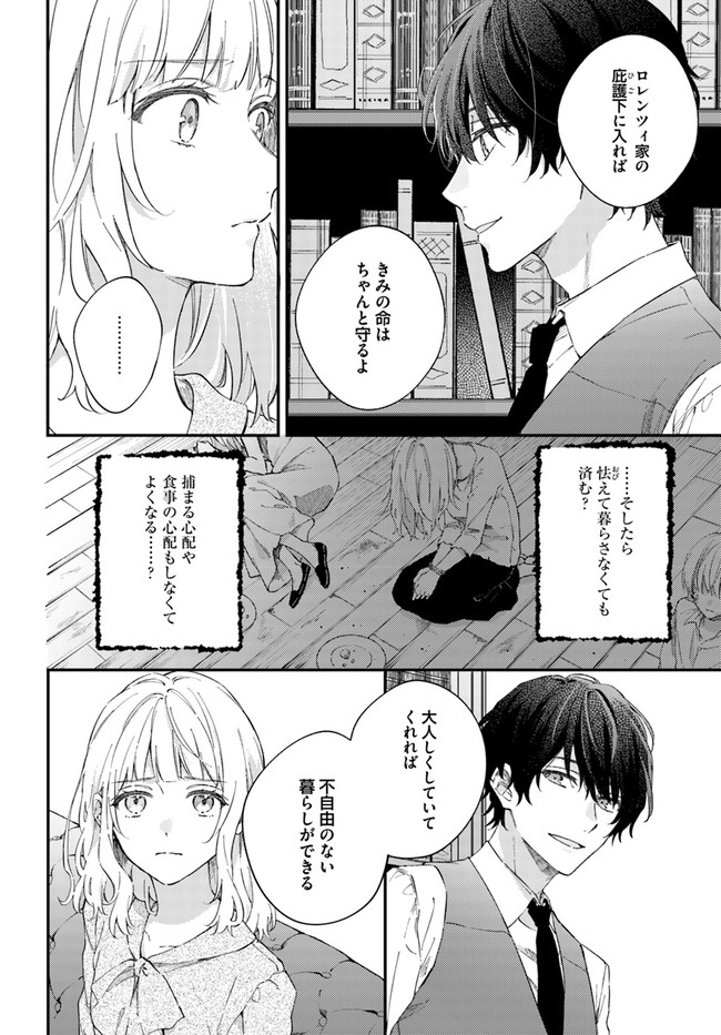 今宵、ロレンツィ家で甘美なる忠誠を 第2話③ 今宵、ロレンツィ家で甘美なる忠誠を 投稿者 admin - 3年 前に 幸せな読書漫画 今宵、ロレンツィ家で甘美なる忠誠を 第2話③ , いいねと共有ボタンをクリックすることを忘れないでください. Manga 今宵、ロレンツィ家で甘美なる忠誠を 常に更新されます 無料コミック Comic Top. 他のマンガの更新を読むことを忘れないでください。 マンガコレクションのリスト 無料コミック Comic Top マンガリストメニューにあります. お友達と共有しましょう! Facebook Twitter Pinterest Whatsapp 前のエピソード すべての章 次のエピソード リスト ページング Loading.. 前のエピソード すべての章 次のエピソード リスト ページング お友達と共有しましょう! Facebook Twitter Pinterest Whatsapp お気に入りに追加に続く 4 人 今宵、ロレンツィ家で甘美なる忠誠を 伝説の《黄金瞳》を持つ少女リタは人買いに捕まり闇市で競売にかけられてしまう。 過去のトラウマで声を失い絶望するリタを競り落としたのはマフィアのボス、アルバートだった。 「きみは僕の花嫁になってもらう」甘い囁きに従うリタだったが、彼が笑顔で人に銃を向ける冷酷な一面を知ってしまう! 危険なマフィアに迎えられたリタの運命は――!? 八橋はち(漫画)冬臣(キャラクター原案)深見アキ(原作) ビーズログ文庫フロースフロースコミックマフィア
