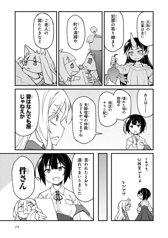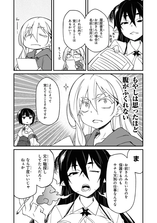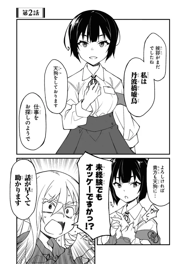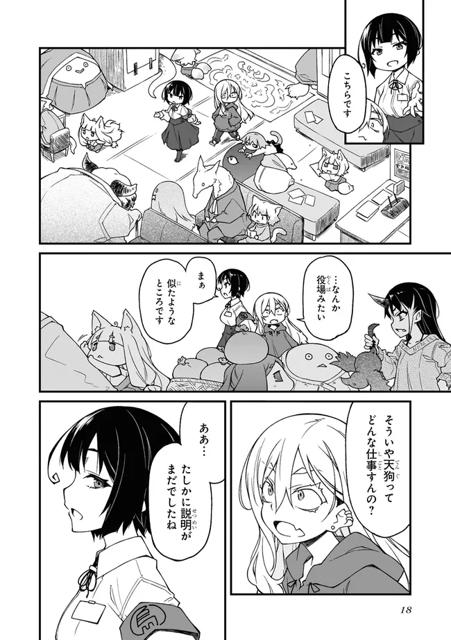 「ここドコ…?」就活中に迷い込んだ異界の町。住人は不可思議な者ばかりで人間は自分ひとり。どうしたものかと思うなか、天狗の少女にそそのかされ、住人たちのドタバタ騒ぎを治める仕事を手伝うことに。さあ、曲者たちの尻ぬぐい、日雇い天狗稼業の幕開けだ!