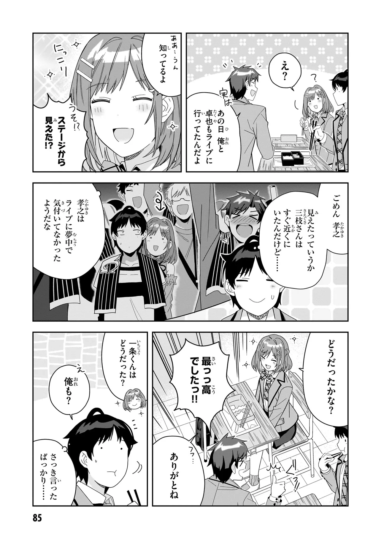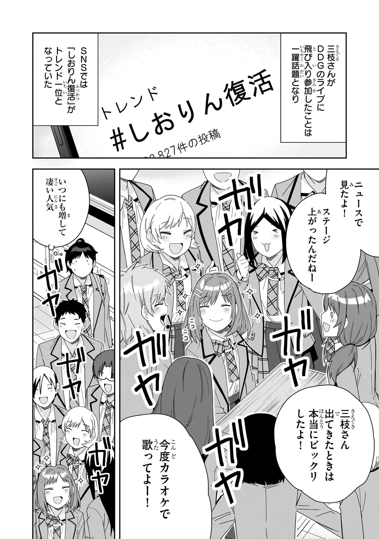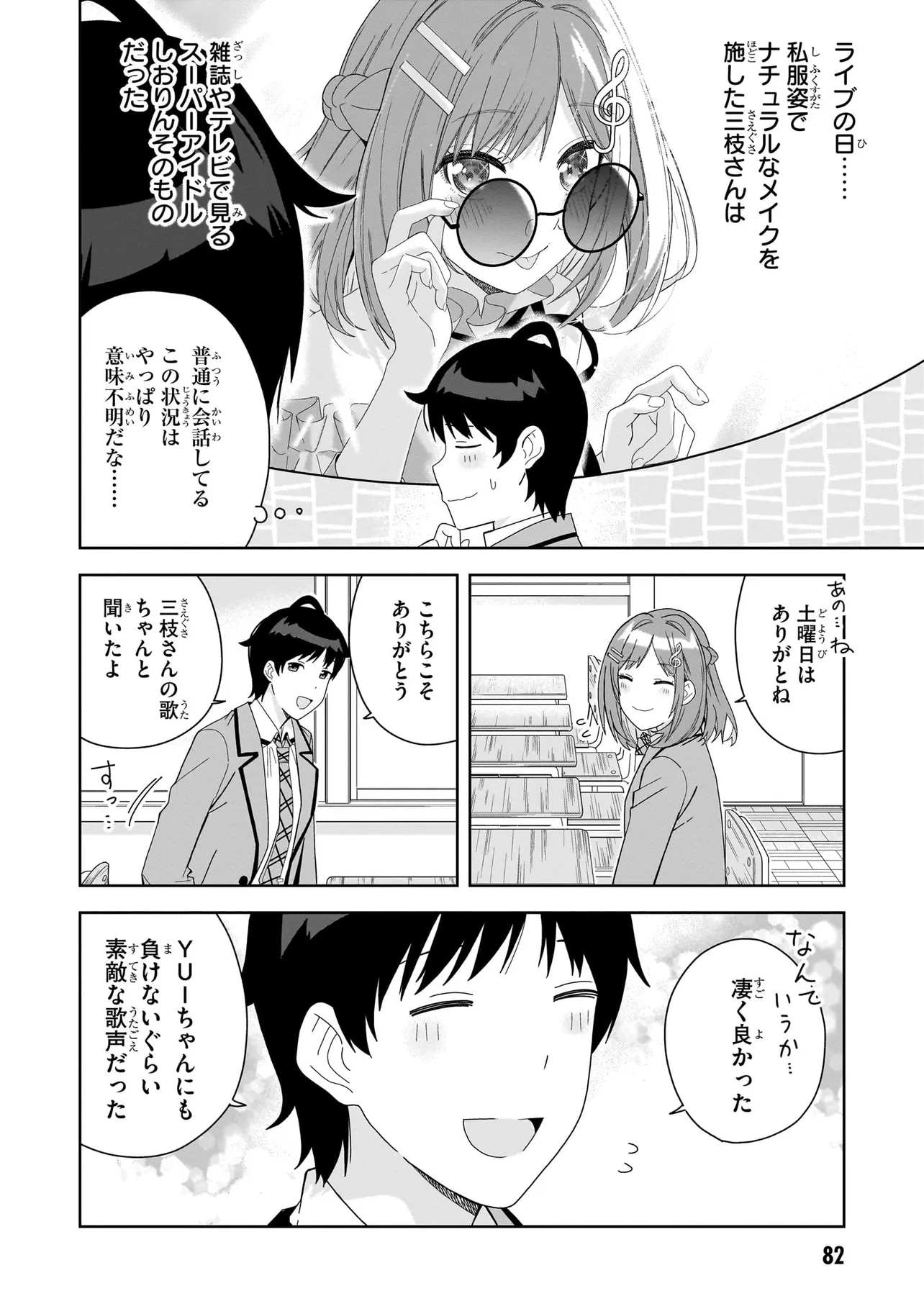 高校進学を機にアイドルを引退した三枝さんは、容姿端麗かつ頭脳明晰。いつも明るくて人当たりも良く、学校で一番の人気者だ。