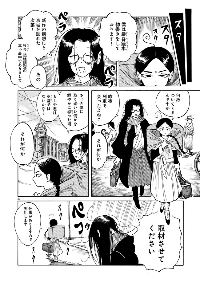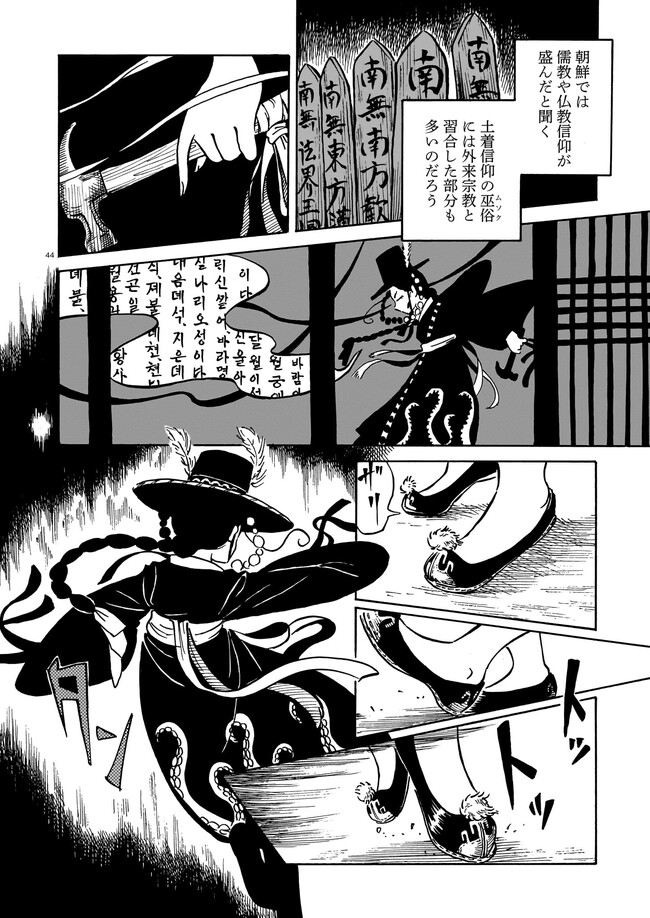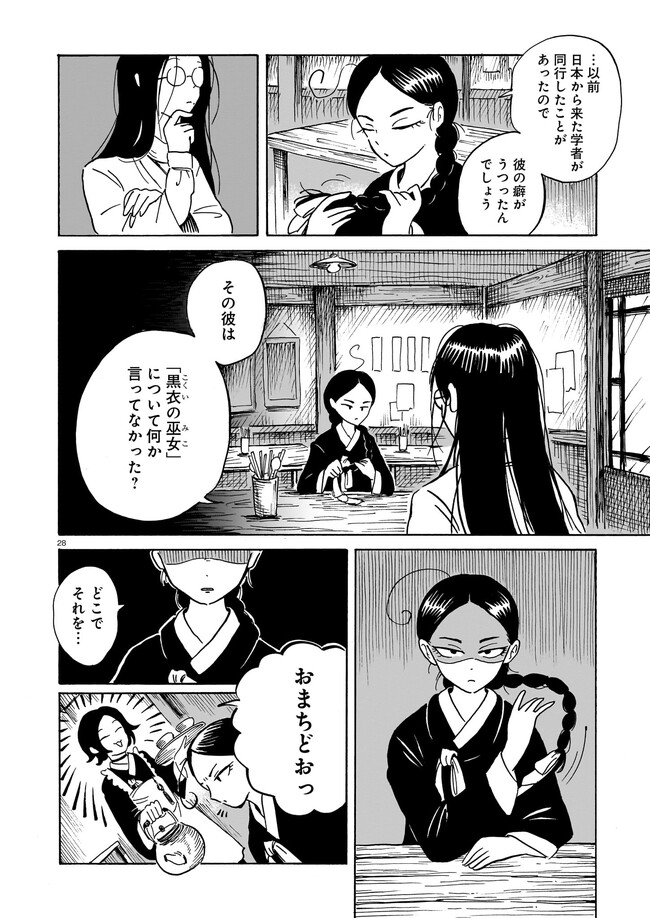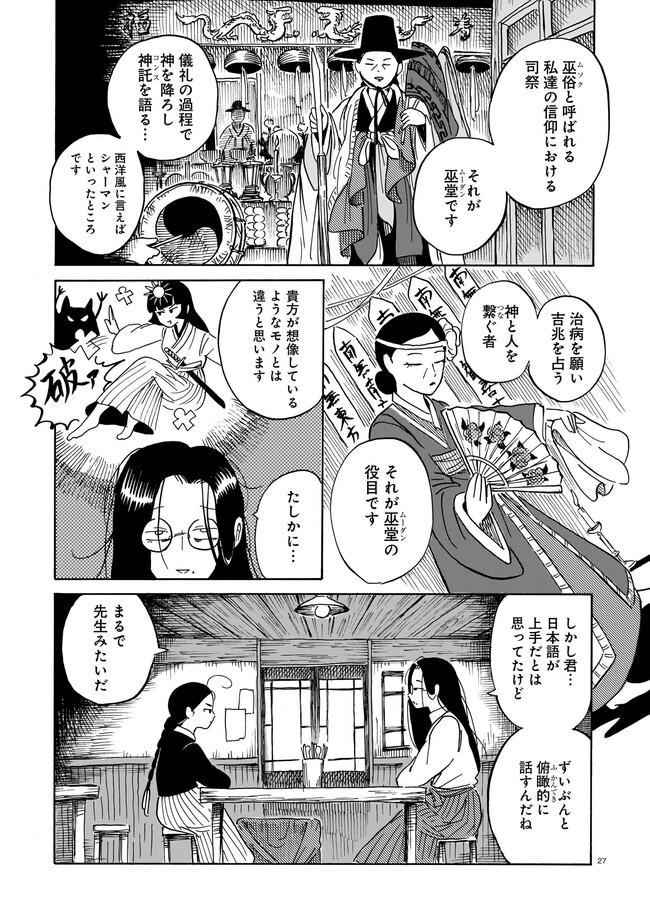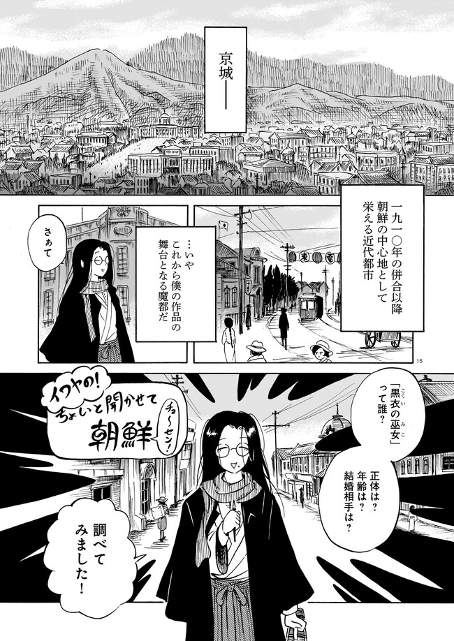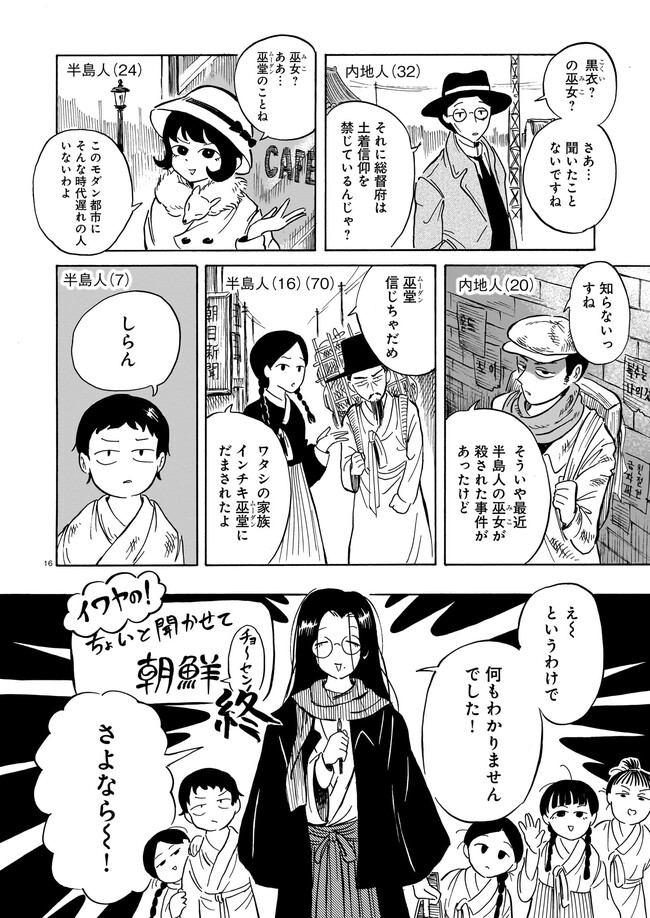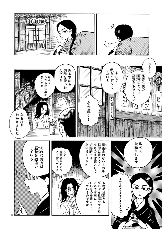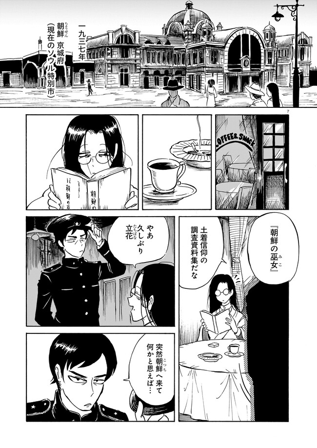 一九三七年 朝鮮・京城。 朝鮮総督府がその存在を秘匿する、「黒衣の巫女」と呼ばれる異端の存在がいた。 日本からやってきた三文小説家・巖谷鏡水(いわや・きょうすい)は、 半ば強引に彼女に同行し取材をすることに。 デリカシーのない小説家と異端の巫女のコンビが繰り広げる、 コリアン・オカルティック・アクション!
