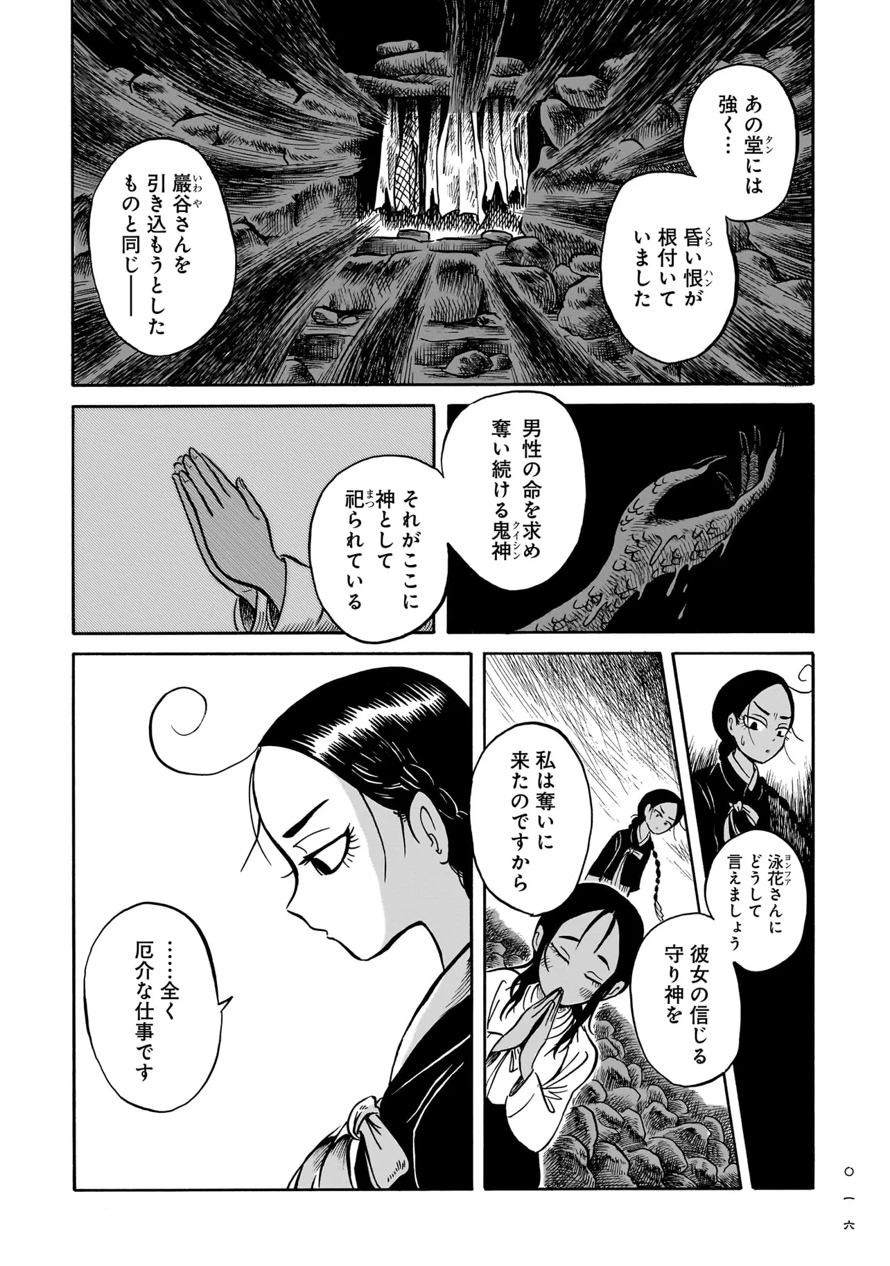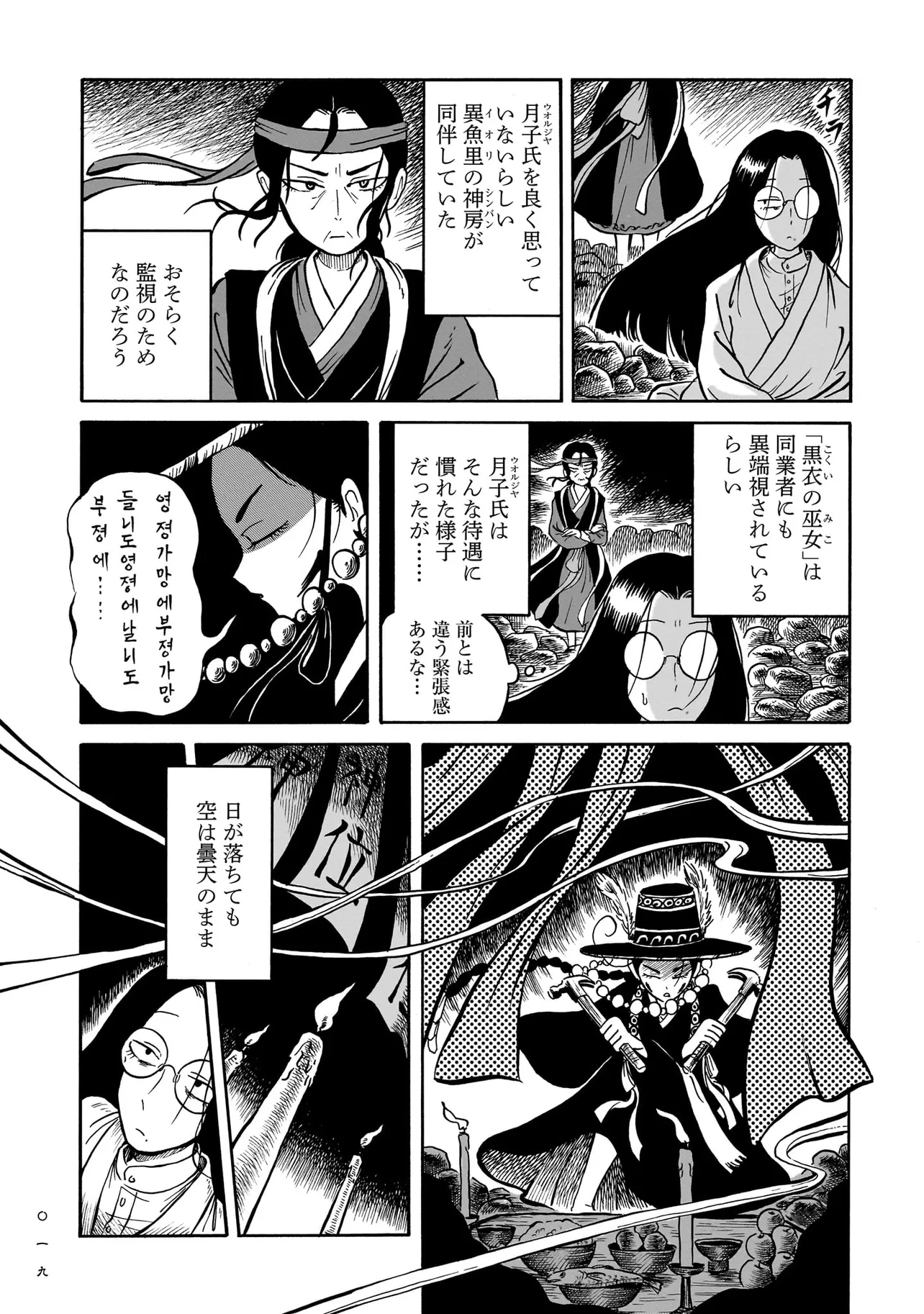 黒巫鏡談 第五話 グエムル、襲来 黒巫鏡談 投稿者 admin - 4か月 前に 幸せな読書漫画 黒巫鏡談 第五話 グエムル、襲来 , いいねと共有ボタンをクリックすることを忘れないでください. Manga 黒巫鏡談 常に更新されます 無料コミック Comic Top. 他のマンガの更新を読むことを忘れないでください。 マンガコレクションのリスト 無料コミック Comic Top マンガリストメニューにあります. お友達と共有しましょう! Facebook Twitter Pinterest Whatsapp 前のエピソード すべての章 次のエピソード リスト ページング Loading.. 前のエピソード すべての章 次のエピソード リスト ページング お友達と共有しましょう! Facebook Twitter Pinterest Whatsapp お気に入りに追加に続く 1 人 黒巫鏡談 一九三七年 朝鮮・京城。 朝鮮総督府がその存在を秘匿する、「黒衣の巫女」と呼ばれる異端の存在がいた。 日本からやってきた三文小説家・巖谷鏡水(いわや・きょうすい)は、 半ば強引に彼女に同行し取材をすることに。 デリカシーのない小説家と異端の巫女のコンビが繰り広げる、 コリアン・オカルティック・アクション! 戸川四餡(著者) アクションホラー・オカルト巫女歴史