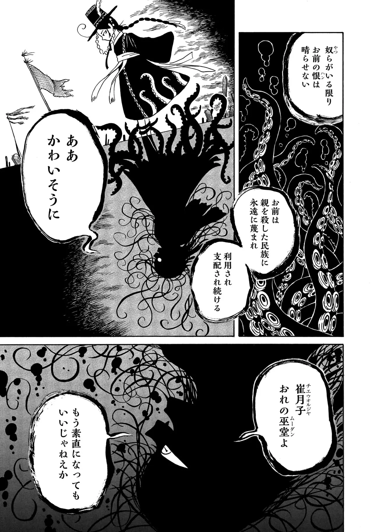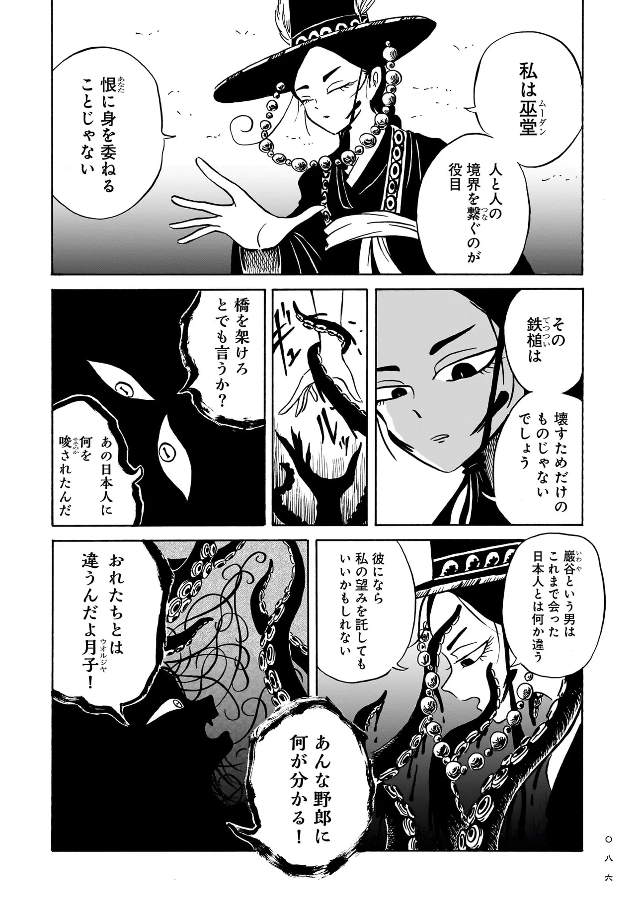 黒巫鏡談 第二話 復讐者に憐れみを 黒巫鏡談 投稿者 admin - 4か月 前に 幸せな読書漫画 黒巫鏡談 第二話 復讐者に憐れみを , いいねと共有ボタンをクリックすることを忘れないでください. Manga 黒巫鏡談 常に更新されます 無料コミック Comic Top. 他のマンガの更新を読むことを忘れないでください。 マンガコレクションのリスト 無料コミック Comic Top マンガリストメニューにあります. お友達と共有しましょう! Facebook Twitter Pinterest Whatsapp 前のエピソード すべての章 次のエピソード リスト ページング Loading.. 前のエピソード すべての章 次のエピソード リスト ページング お友達と共有しましょう! Facebook Twitter Pinterest Whatsapp お気に入りに追加に続く 1 人 黒巫鏡談 一九三七年 朝鮮・京城。 朝鮮総督府がその存在を秘匿する、「黒衣の巫女」と呼ばれる異端の存在がいた。 日本からやってきた三文小説家・巖谷鏡水(いわや・きょうすい)は、 半ば強引に彼女に同行し取材をすることに。 デリカシーのない小説家と異端の巫女のコンビが繰り広げる、 コリアン・オカルティック・アクション! 戸川四餡(著者) アクションホラー・オカルト巫女歴史