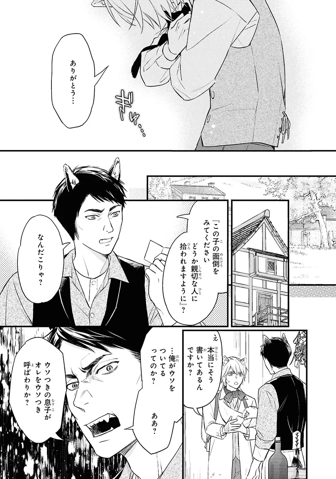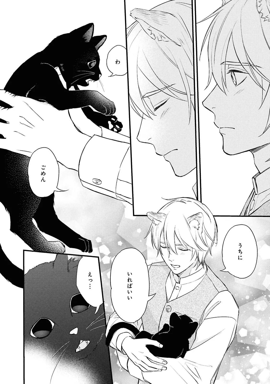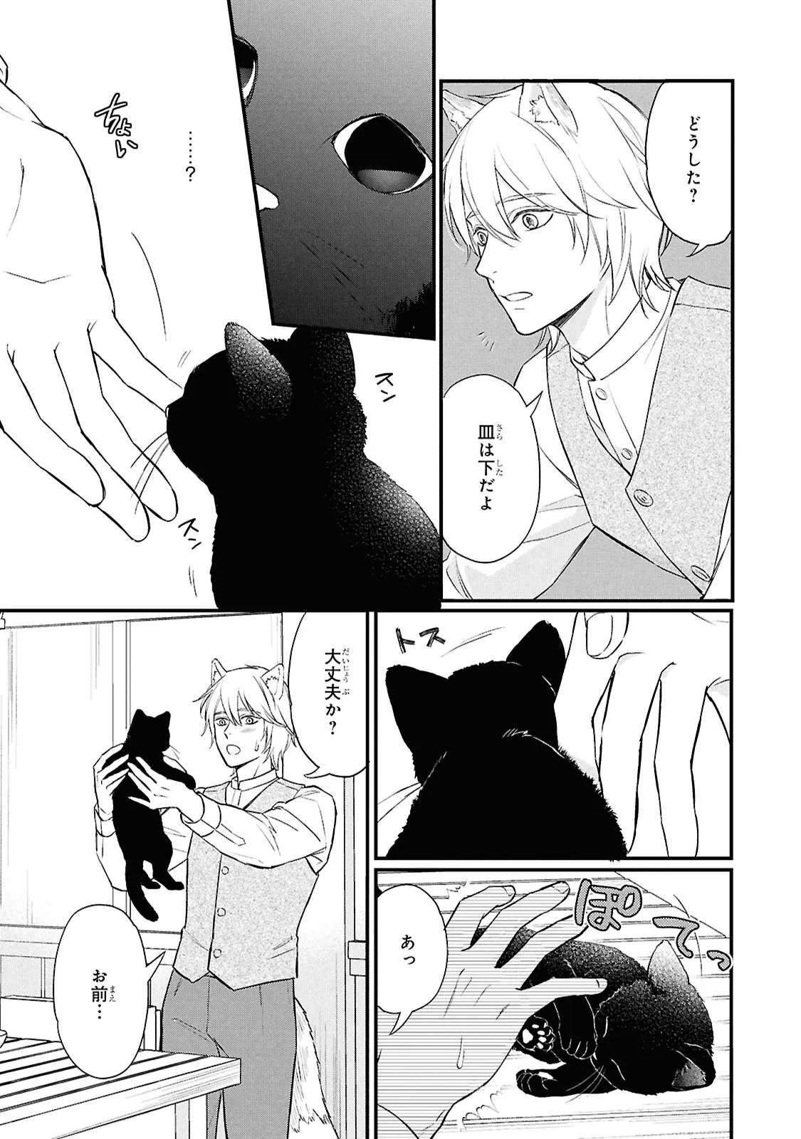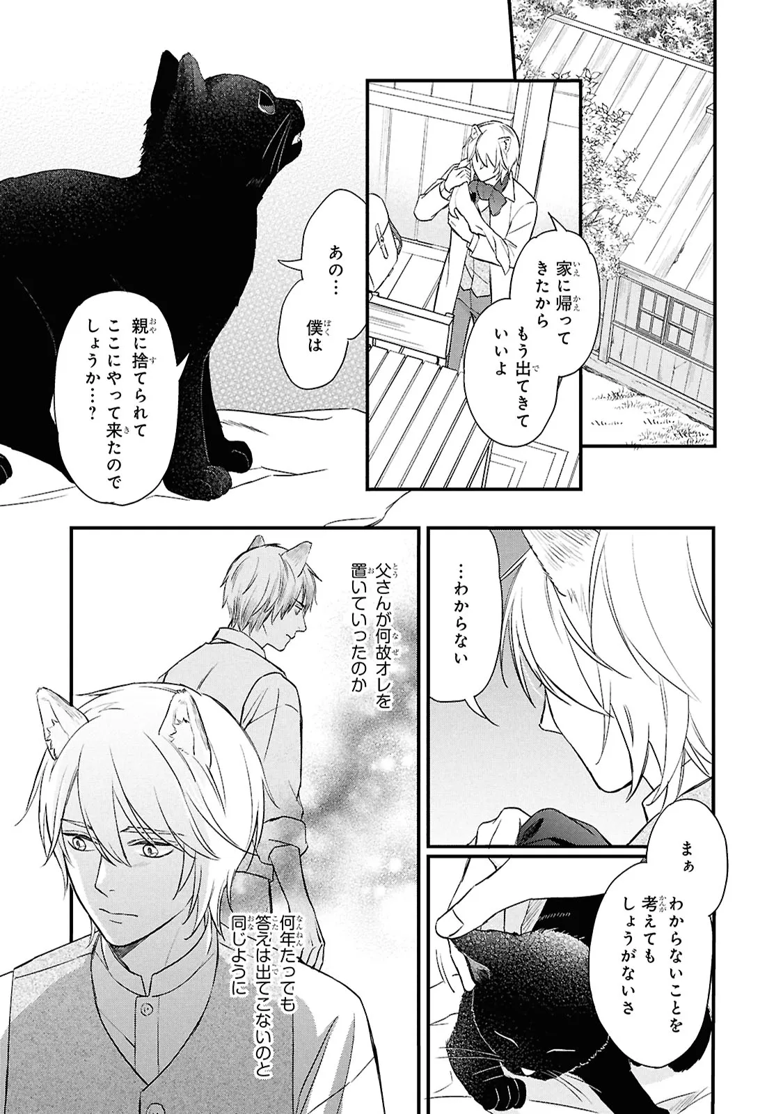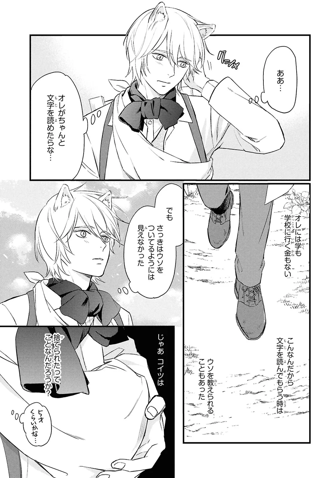 狐獣人のコガネは、父親が罪を犯したせいで村人からは恨まれ、身を粉にして働く毎日を送っていた。 そんな中、記憶もなく目も見えない猫獣人の子供を助け、育てていく決意をする。 やがて成長した子供・クロは、コガネに思慕の情を抱くが…。
