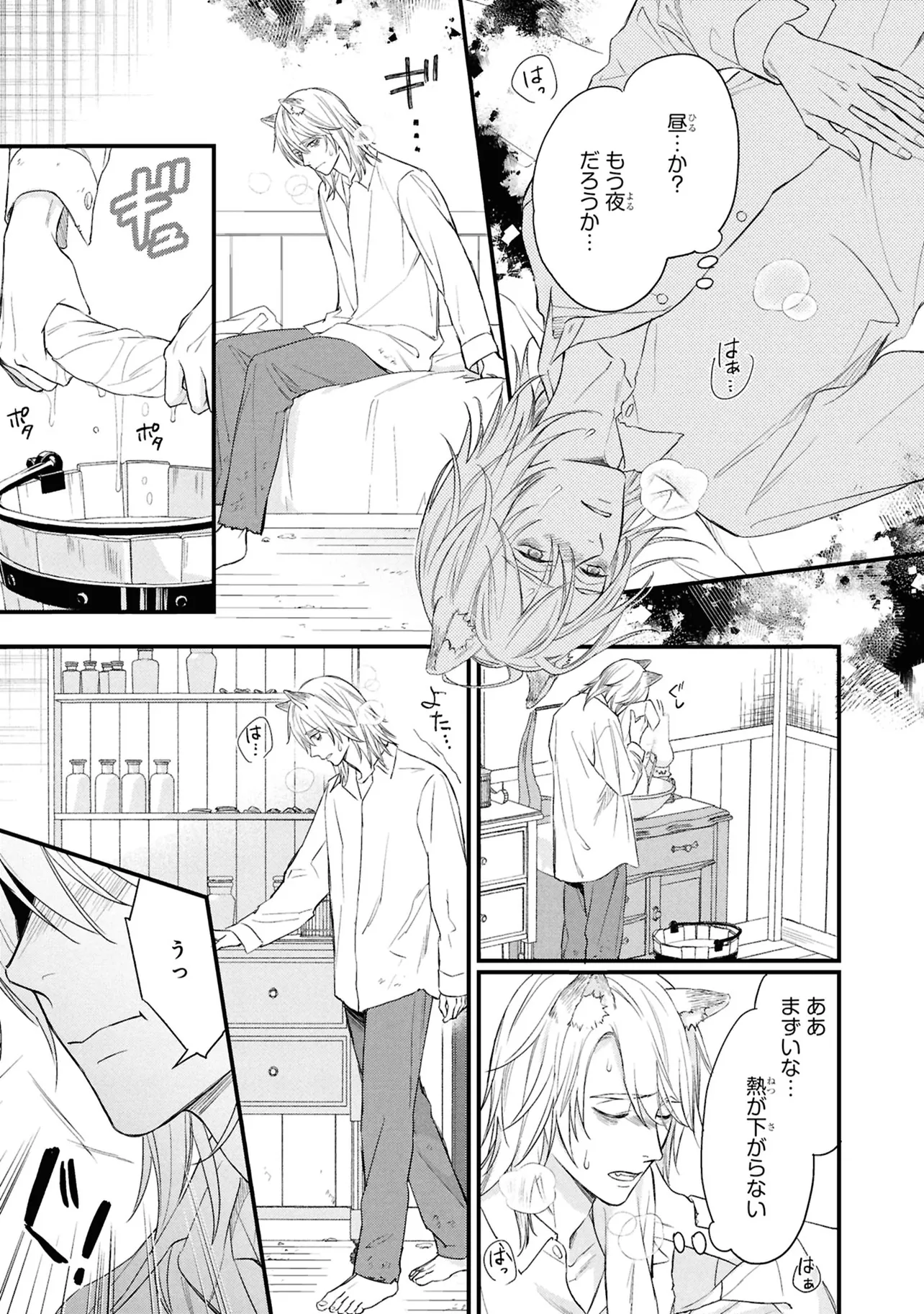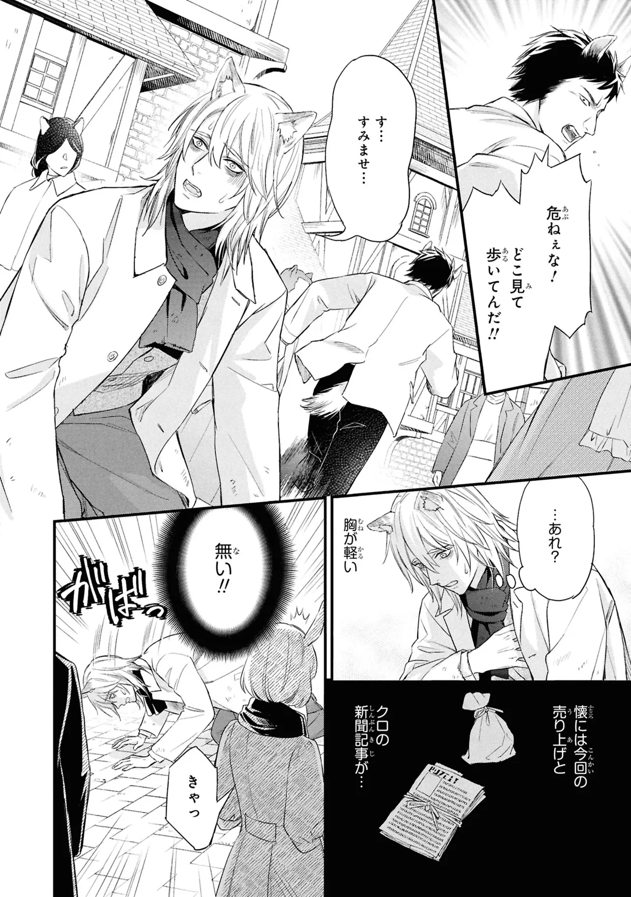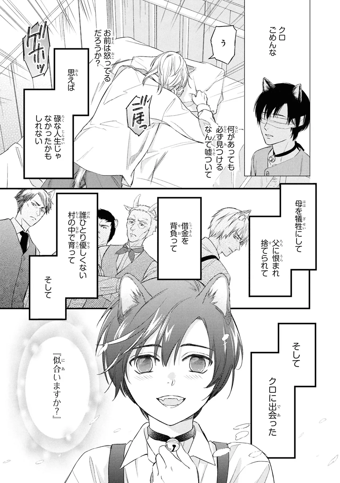 狐獣人のコガネは、父親が罪を犯したせいで村人からは恨まれ、身を粉にして働く毎日を送っていた。 そんな中、記憶もなく目も見えない猫獣人の子供を助け、育てていく決意をする。 やがて成長した子供・クロは、コガネに思慕の情を抱くが…。