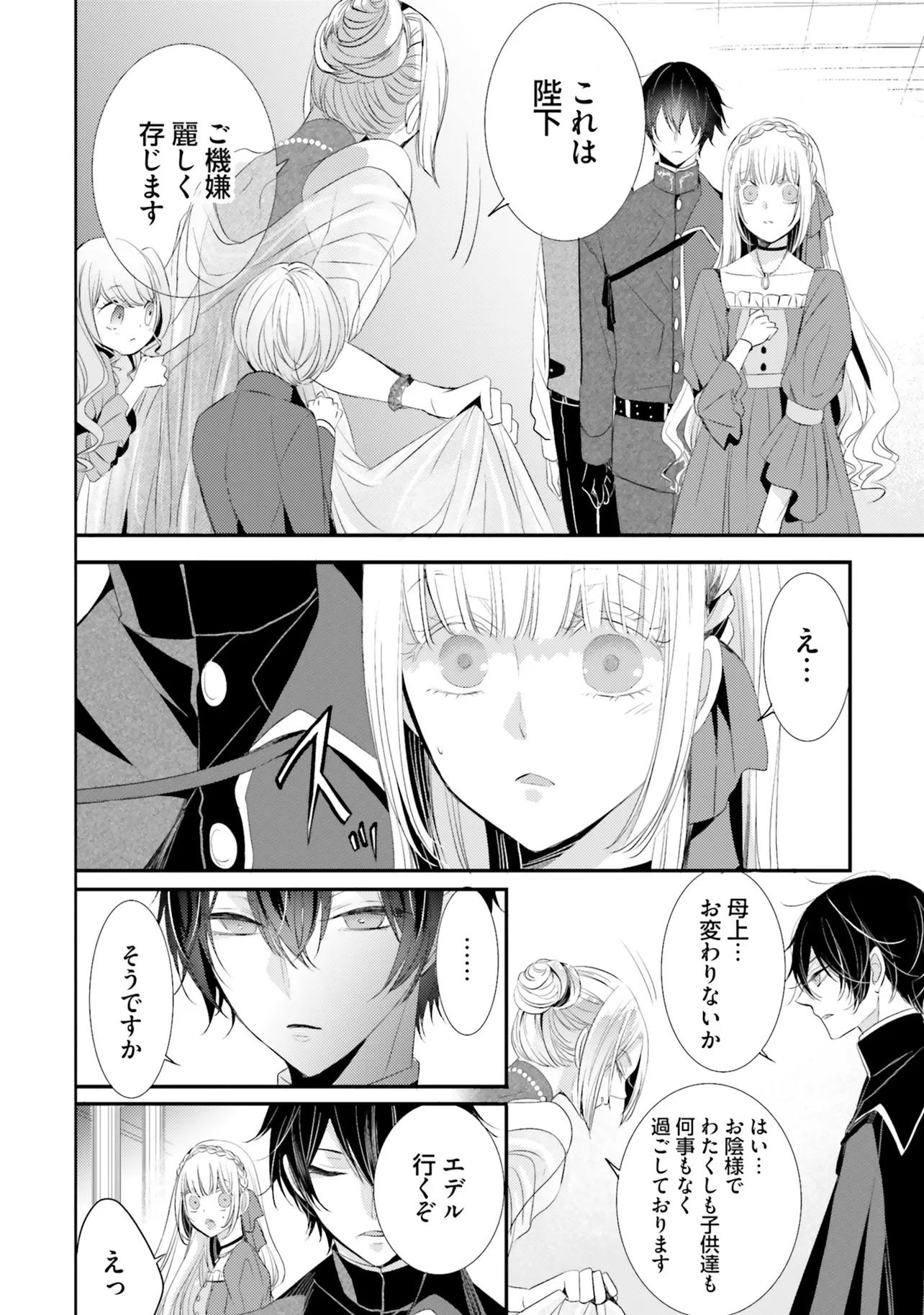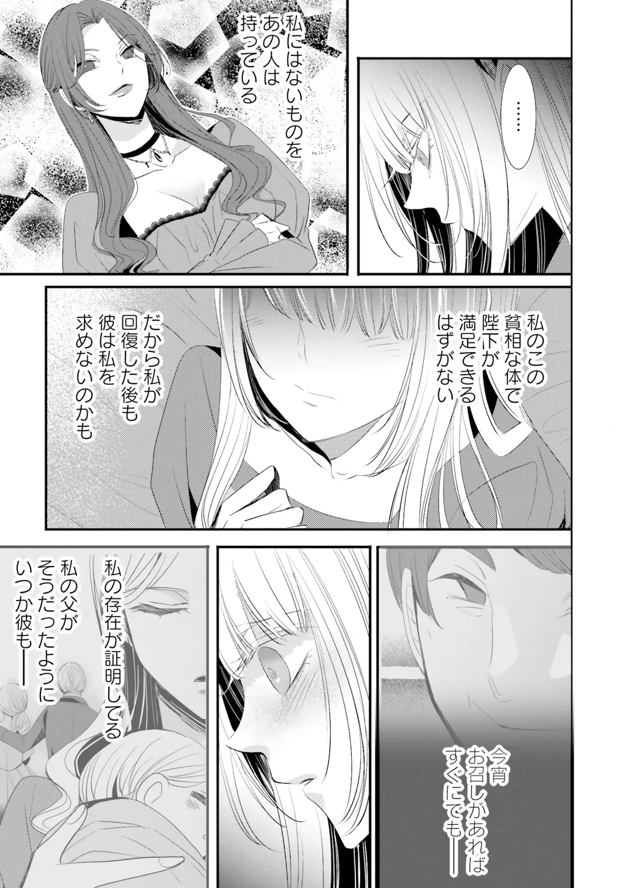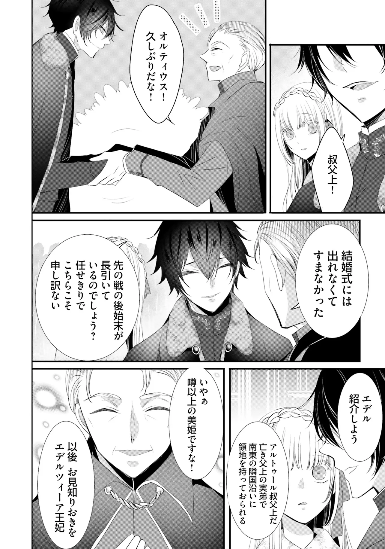 妾腹ということで王妃らに虐げられて育ってきたゼルスの王女エデルは、戦に負けた代償として義姉の身代わりで戦勝国へ嫁ぐことに。相手は「黒狼王(こくろうおう)」と渾名されるオルティウス。野獣のような体で闘うことしか能がないと噂の蛮族の王。しかし結婚の儀の日にエデルが対面したのは、瞳に理知的な光を宿す黒髪長身の美しい青年で――。やがて、二人の邂逅は王国の存続を揺るがす事態に発展するのだった…。激動の運命に翻弄される、波瀾万丈のシンデレラロマンス、待望のコミカライズ版!