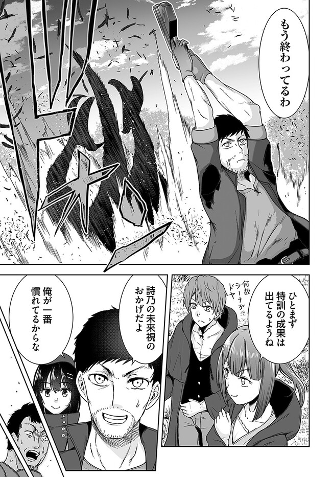 妻の浮気で離婚をし、仕事も辞め、 あてもなくさまよう男、岩野誠治。 彼はたまたま乗っていた電車で、 突然現れた魔法陣により異世界へ転移することに。 転移したのは誠治と乗り合わせていた 女子中学生の坂下詩乃含め、7名。 転移先では厚く歓迎をされていたのだが、 詩乃だけはなぜか悪寒がしていて――? くたびれた中年おじさんと女子中学生の、 死線を彷徨う異世界転移ファンタジー。