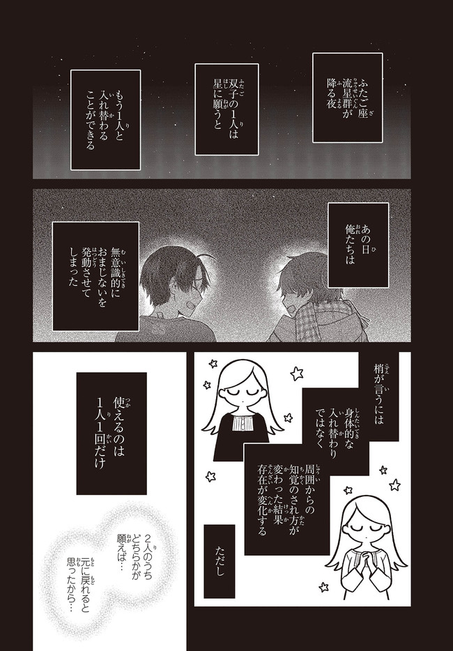 何気なくマンションの屋上に向かうと、同じく双子である友人・和馬が座っていた。