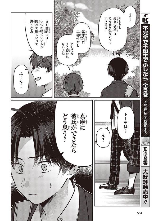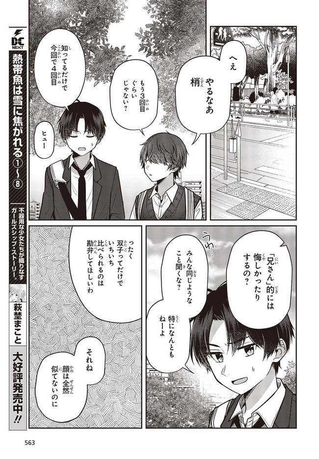 何気なくマンションの屋上に向かうと、同じく双子である友人・和馬が座っていた。