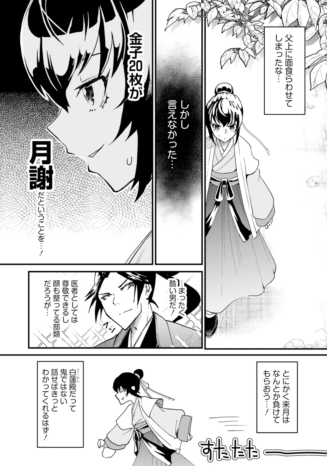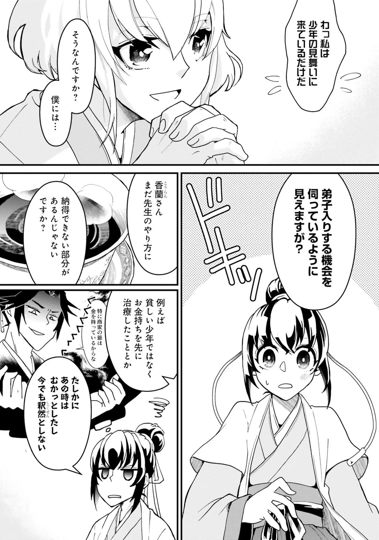由緒正しい宮廷医の家系に生まれ、仁の心の医師を志す陽香蘭。ある日、庶民から法外な治療費を請求するという闇医者・白蓮の噂を耳にする。 正義感から彼を改心させるべく診療所へ出向く香蘭。だがその闇医者は、運び込まれた急患を見た事もない外科的手法でたちどころに救ってみせる。 香蘭は白蓮に強引に弟子入りし、彼から医療を学ぼうとするが……。 わたしが出会った黒衣の医者。 彼は美形で凄腕で性悪で、そして『ある秘密』を持っていた――。 メディアワークス文庫の大人気『中華医療ファンタジー』待望のコミカライズ!
