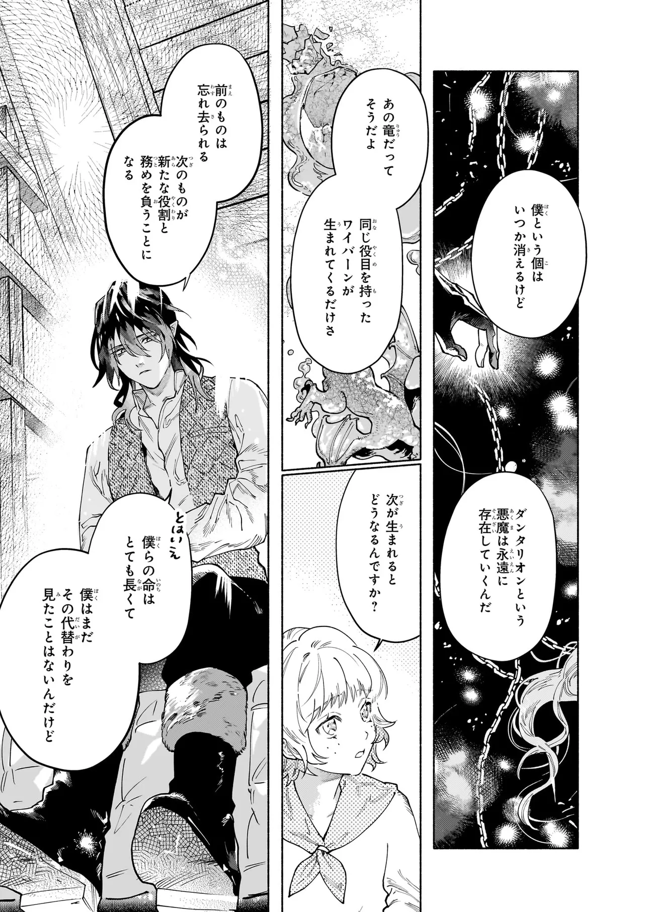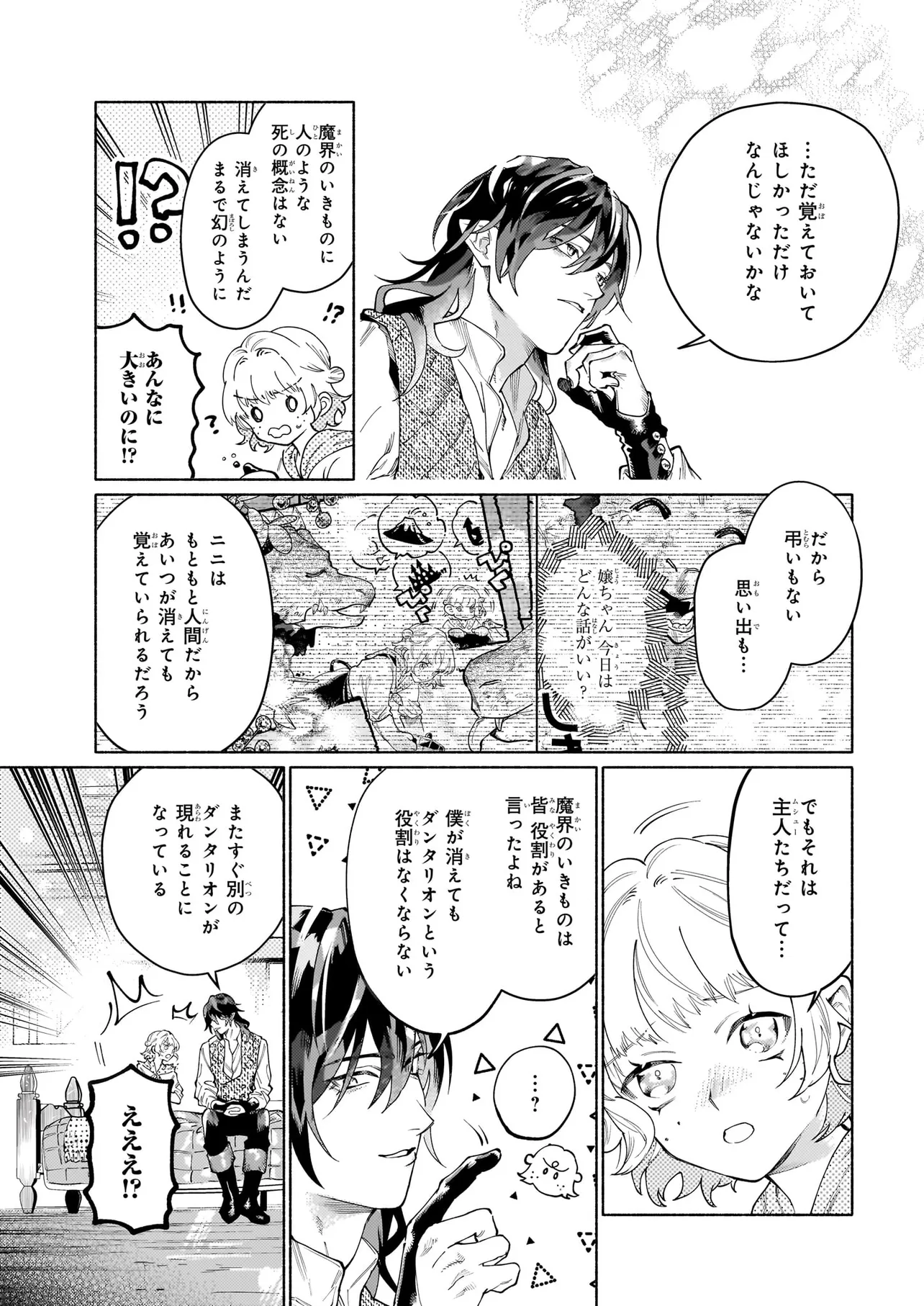 ダンタリオンと契約し、魔界で使い魔として生きる選択をしたニニを待っていたのは過酷な生活……ではなく、甘い物が好きで思慮深い主人による手厚い庇護だった。魔獣専門の獣医であるダンタリオンとの、いびつだけどあたたかな暮らしは、やがてニニの心の凍った部分を溶かしていく。