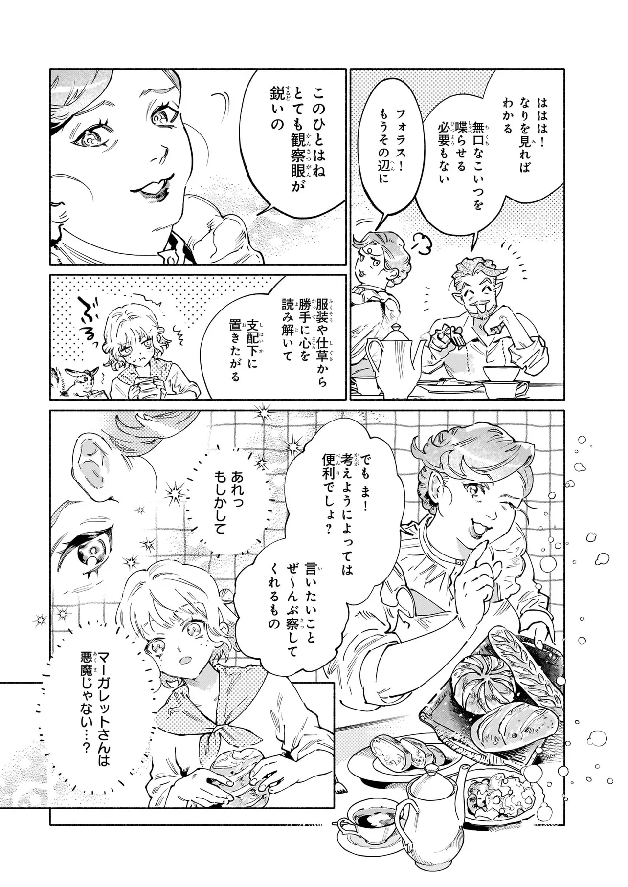 死にかけの少女を拾ったのは孤独な悪魔―― 魔界で始まる、あたたかな主従物語 19世紀フランスの片田舎で、親に捨てられ死にかけていた少女ニニは、美しい悪魔ダンタリオンと出会う。 ダンタリオンと契約し、魔界で使い魔として生きる選択をしたニニを待っていたのは過酷な生活……ではなく、甘い物が好きで思慮深い主人による手厚い庇護だった。魔獣専門の獣医であるダンタリオンとの、いびつだけどあたたかな暮らしは、やがてニニの心の凍った部分を溶かしていく。