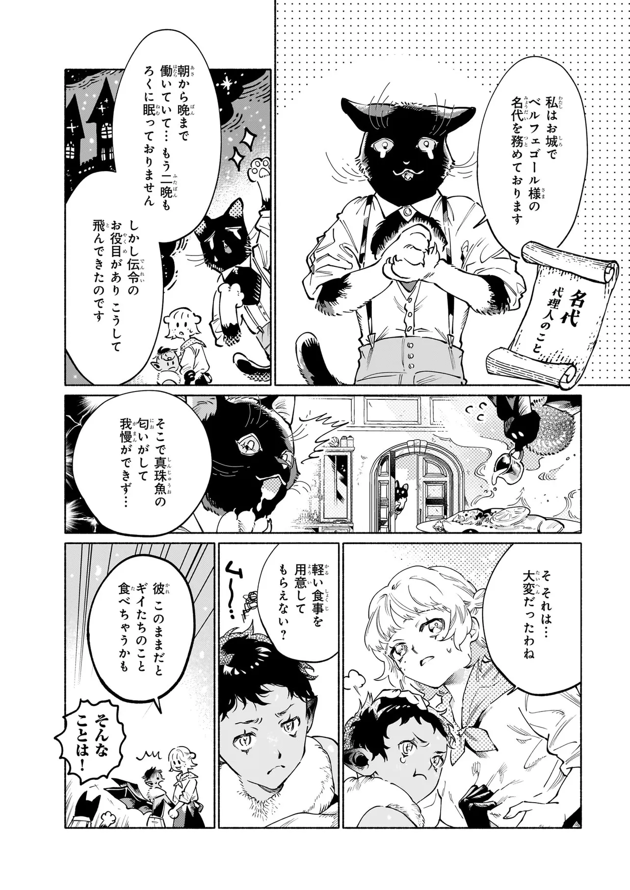 ダンタリオンと契約し、魔界で使い魔として生きる選択をしたニニを待っていたのは過酷な生活……ではなく、甘い物が好きで思慮深い主人による手厚い庇護だった。魔獣専門の獣医であるダンタリオンとの、いびつだけどあたたかな暮らしは、やがてニニの心の凍った部分を溶かしていく。