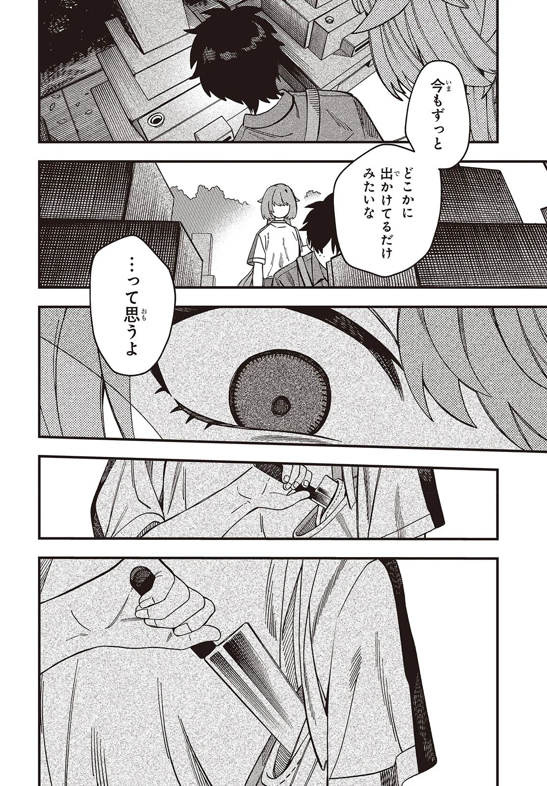 マッドミニスケープ 第4話 マッドミニスケープ 投稿者 admin - 2年 前に 幸せな読書漫画 マッドミニスケープ 第4話 , いいねと共有ボタンをクリックすることを忘れないでください. Manga マッドミニスケープ 常に更新されます 無料コミック Comic Top. 他のマンガの更新を読むことを忘れないでください。 マンガコレクションのリスト 無料コミック Comic Top マンガリストメニューにあります. お友達と共有しましょう! Facebook Twitter Pinterest Whatsapp 前のエピソード すべての章 次のエピソード リスト ページング Loading.. 前のエピソード すべての章 次のエピソード リスト ページング お友達と共有しましょう! Facebook Twitter Pinterest Whatsapp お気に入りに追加に続く 0 人 マッドミニスケープ ワケあって一緒に暮らしている陽日と幼馴染の兄・実。 事あるごと執拗に陽日の命を要求する実だが 本物の実は4年前に死んでいるようで……。 では、陽日とともにいる実は「何」なのか――。 気鋭・廣瀬アユムが描く新感覚マッドスリラーホラー開幕。 廣瀬アユム(著者) サイコドキドキハラハラホラー・オカルト尽くす系女子幼馴染