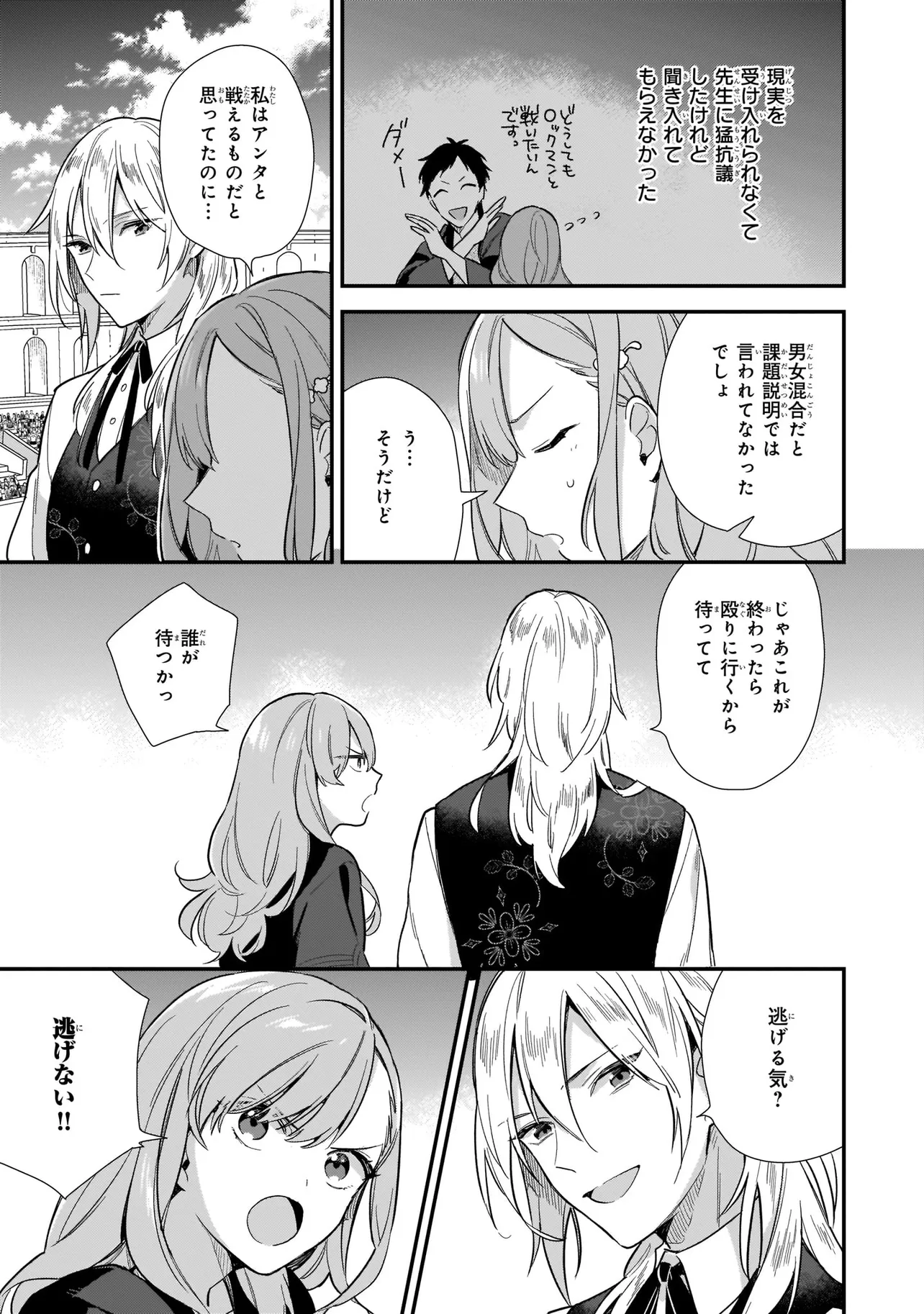 「庶民の意地で一番になってやる!」と決意したものの、隣の席の公爵子息・ロックマンが何かと突っかかってきて、毎度競い合っていた。