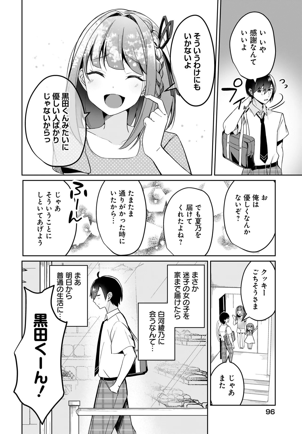 恋愛経験ゼロの陰キャ高校生・黒田雄星がある日、 迷子になっていた幼女を家まで届けると… 学年一の美少女・白河綾乃が出現!! 「妹を助けてくれたお礼に」と、 なぜか彼女が大胆に迫ってくるようになり、 毎日がハプニング状態!? 更に巨乳オタク同級生や、かまってちゃんな後輩女子も登場し、 一気に華やかな日常に――!? “憧れのあの子”と急接近して、運命が変わる学園ラブコメ!