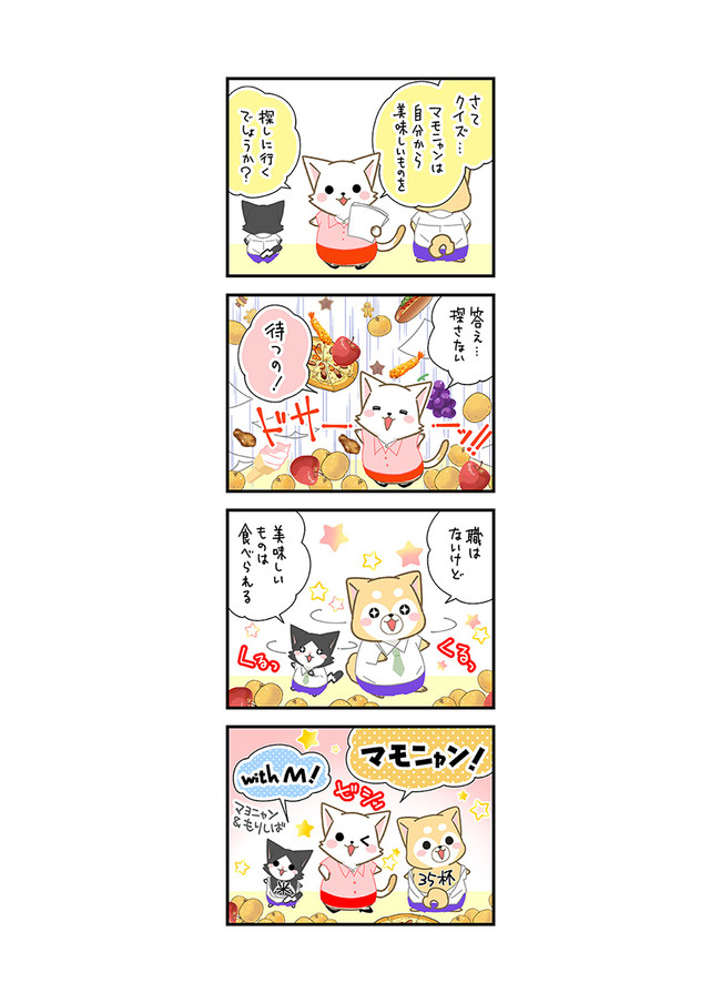 マモニャンは神様の庭にある大きな世界樹にそびえ立つイチジクの実から誕生したお守りの猫。アナタのそばにマモニャンがいると、神様からのご褒美で、美味しい食べ物の巡り合えますっ♪