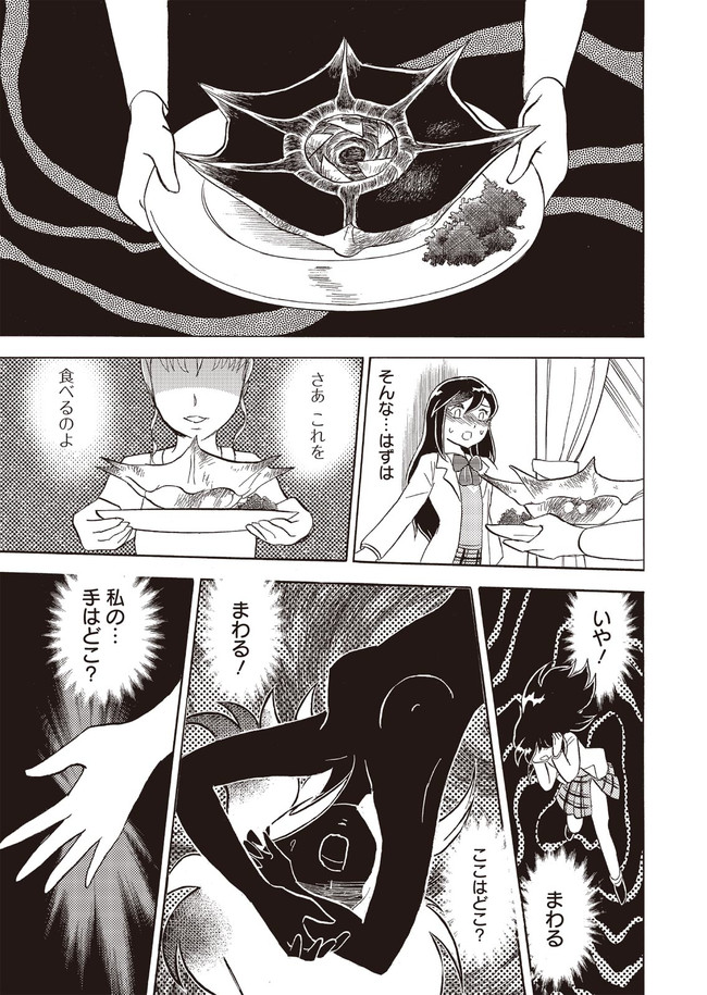 ツトムはその日、何かから逃げるように車を走らせていた。 サービスエリアに車を止め嘔吐するツトム、その時、見知らぬ女性が水を差し出してきて…。 彼女に電話が使えるところまで送ってほしいと頼まれ、なにやら違和感を覚えながらも