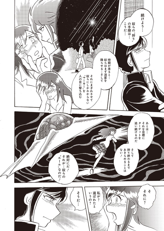 夜の公園で目撃した美しい流星雨、それこそが新たな恐怖の始まりだった。突如襲いかかってきたUFOとその邪悪な意思が少女からすべての日常を奪い去る‼ 鬼才・長谷川裕一の待望のオリジナル、ここに開幕!