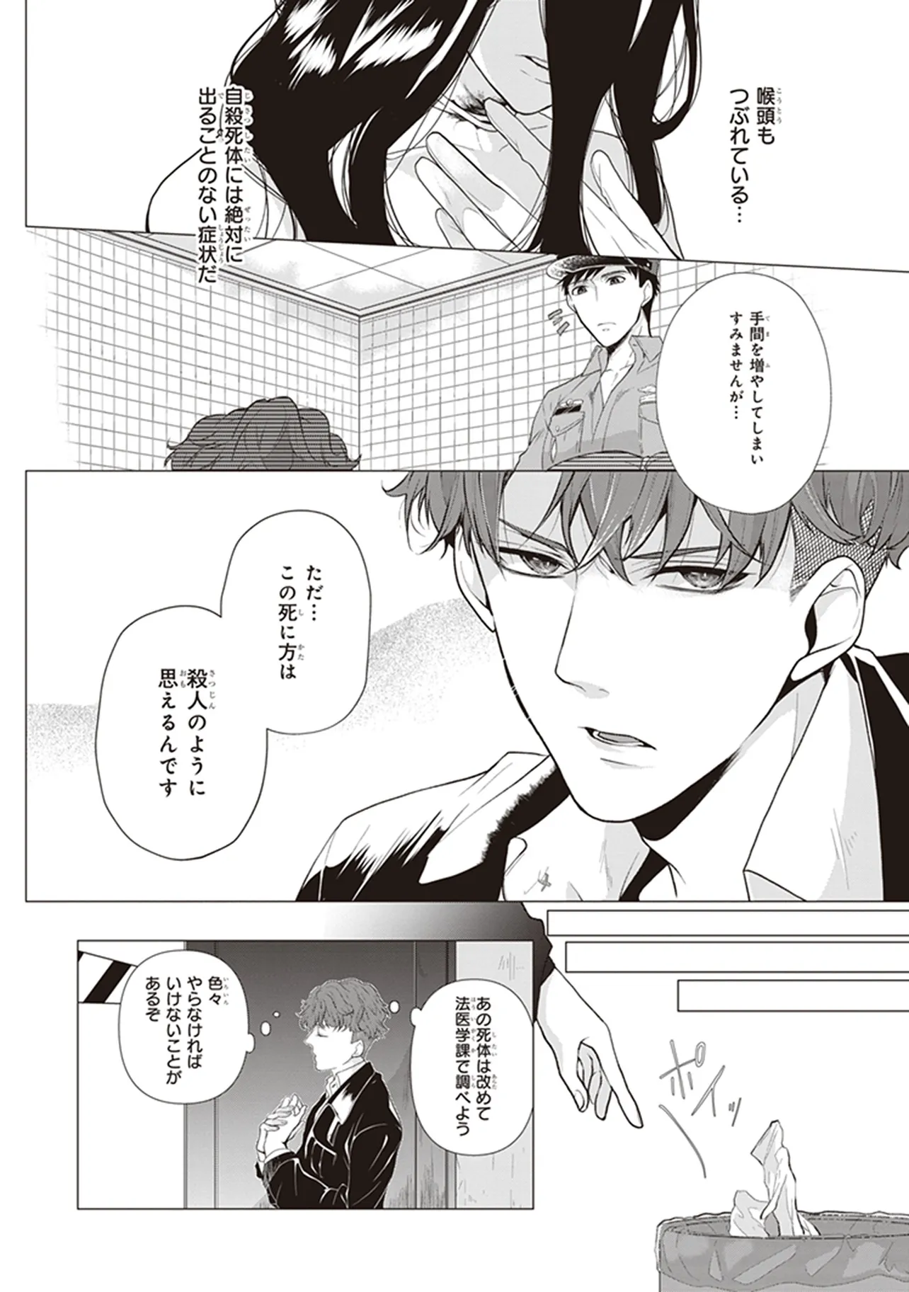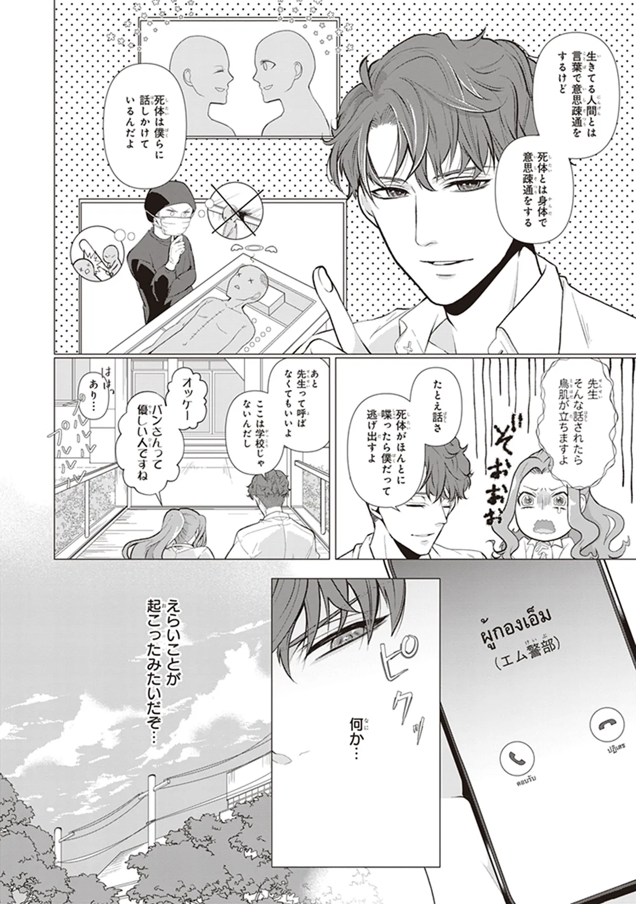 優秀な監察医のバンは、自殺と思われる女性の遺体を検視し、他殺と結論づける。 しかしその晩、見知らぬ襲撃者に、報告書を自殺と書くよう脅され、それを相談した検察官の親友が失踪。 第一発見者の青年で塾講師のテーンを疑うが、彼は一緒に犯人を捜すと言ってきて……。 ブーム沸騰中のタイBL法医学作品、待望の原作小説コミカライズ