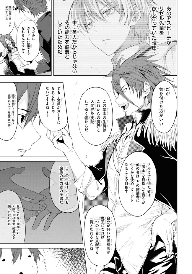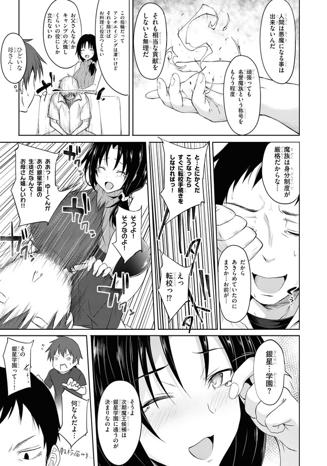 魔族にとって人間は奴隷でしかない──。 次期魔王候補に選ばれた普通の男子高校生・盛岡雄斗は、 転入した悪魔の学校『銀星学園』で生徒たちから蔑まれる。 しかし、魔族の美少女・姫神リゼルとの出逢いが、 雄斗の人生と世界を変えていく。 「──あなたを次期魔王にしてみせる。」 それは魔族にはない、人間の雄斗にだけ許された特別な力。 魔王候補となった人間が、正義の魔王となるべく 最強悪魔たちを倒し、魔の頂へと駆け上がっていく! 爽快にして妖艶! ちょっぴりHな成り上がり学園魔術ファンタジー コミカライズ堂々開幕!