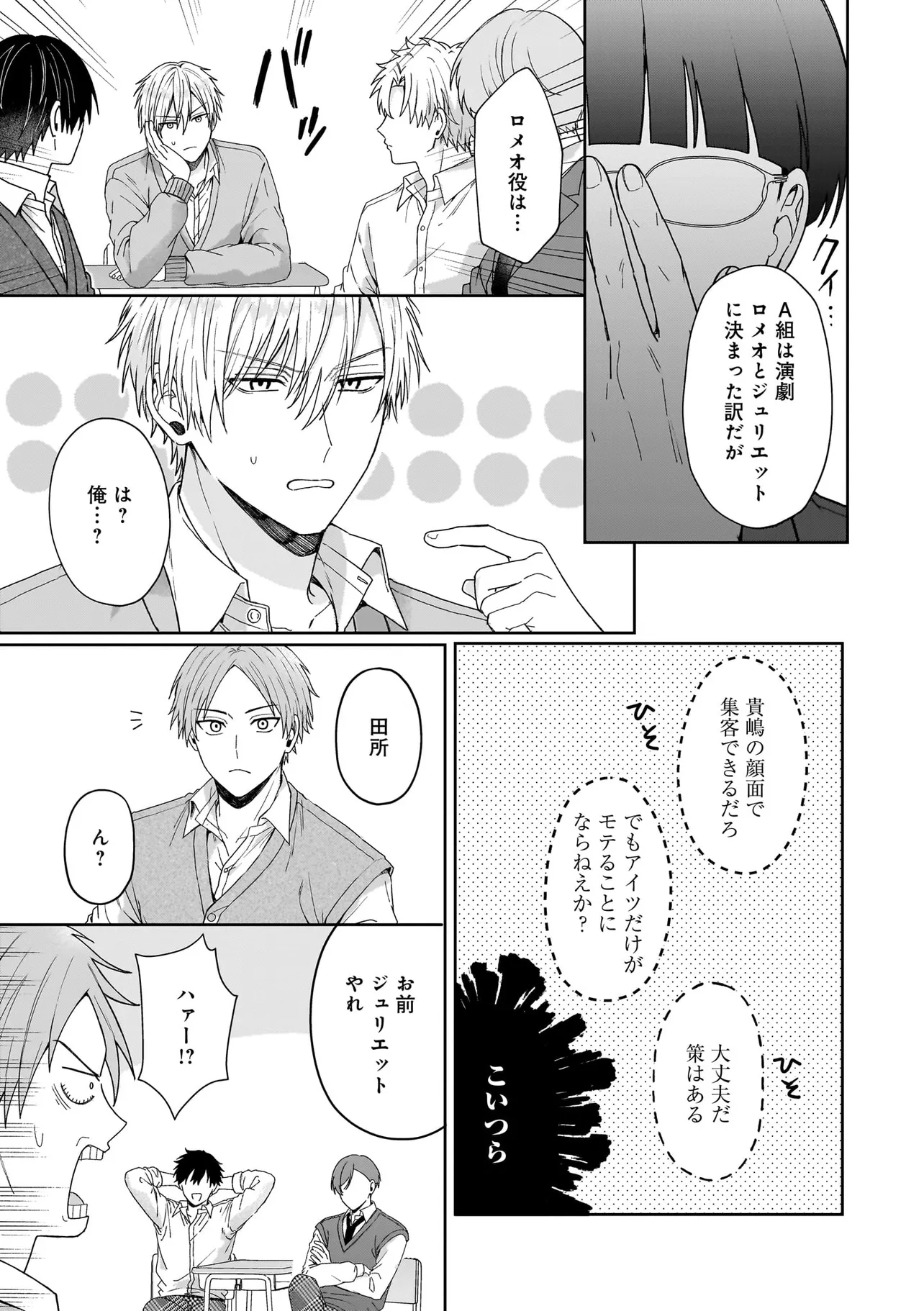 貴嶋は転校初日に男同士の校内セックスを目撃してしまった…!! どう見ても同意のない、一方的な雰囲気に 言葉も出ない貴嶋。 何もできないままその場を去ったものの 一日中気がかりなまま。 その気持ちを引きずったまま、放課後の英会話スクールへ向かうと… 隣の席にいるのはどう見ても、"あの時"の!? 学校での雰囲気とまるで違う彼に戸惑いながらも 話しかけるが、他人のフリをされ続ける貴嶋。 いらつく貴嶋だったが彼は誰にも言えない秘密を抱えていた。