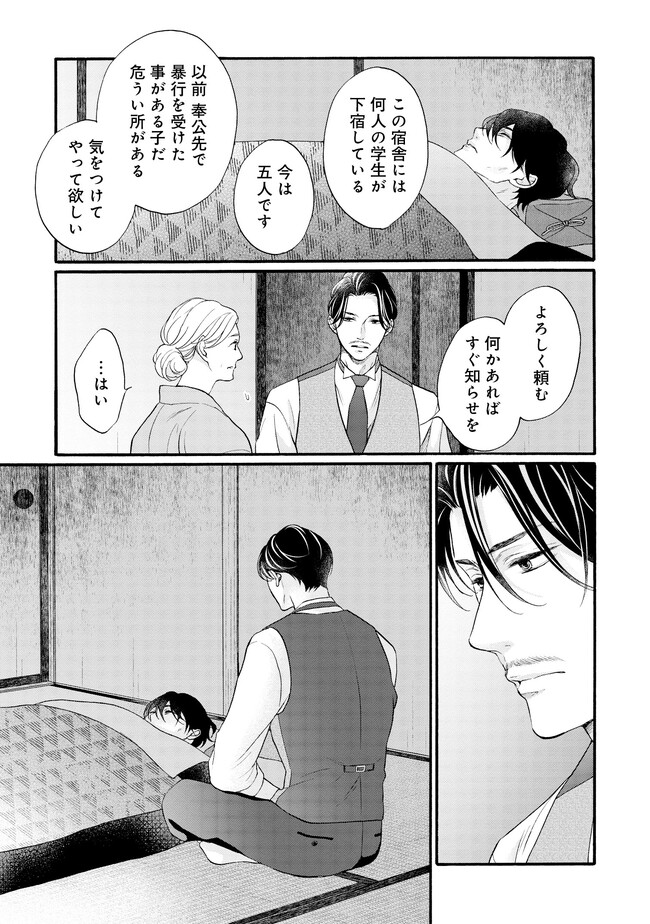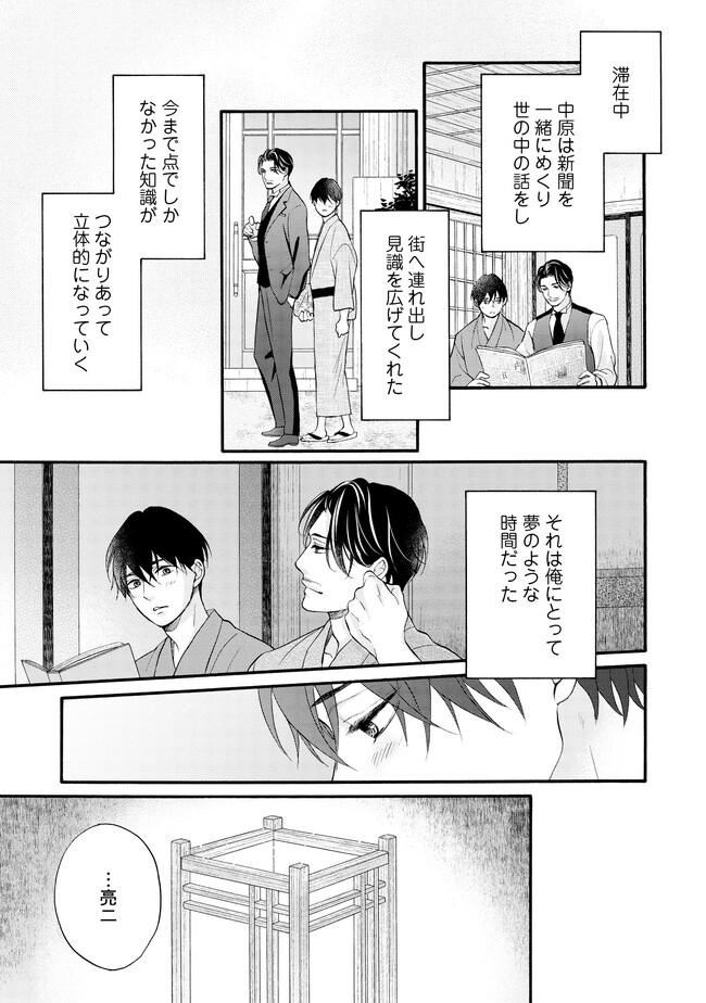 ――明治末期。 日露戦争後の電力需要の拡大を受け、欧州帰りの佐伯亮二は、 地方の水力発電所の計画技師として参画し、忙しい毎日を送っていた。 彼の傍らに居るのは、忠実な助手・エドワード。 2年前に、“言葉も話せぬ阿呆の人夫”として働いているのを見つけ、 世話してやったのが始まりだった。 二人の主従関係は、少しずつ変化を見せていて――…。