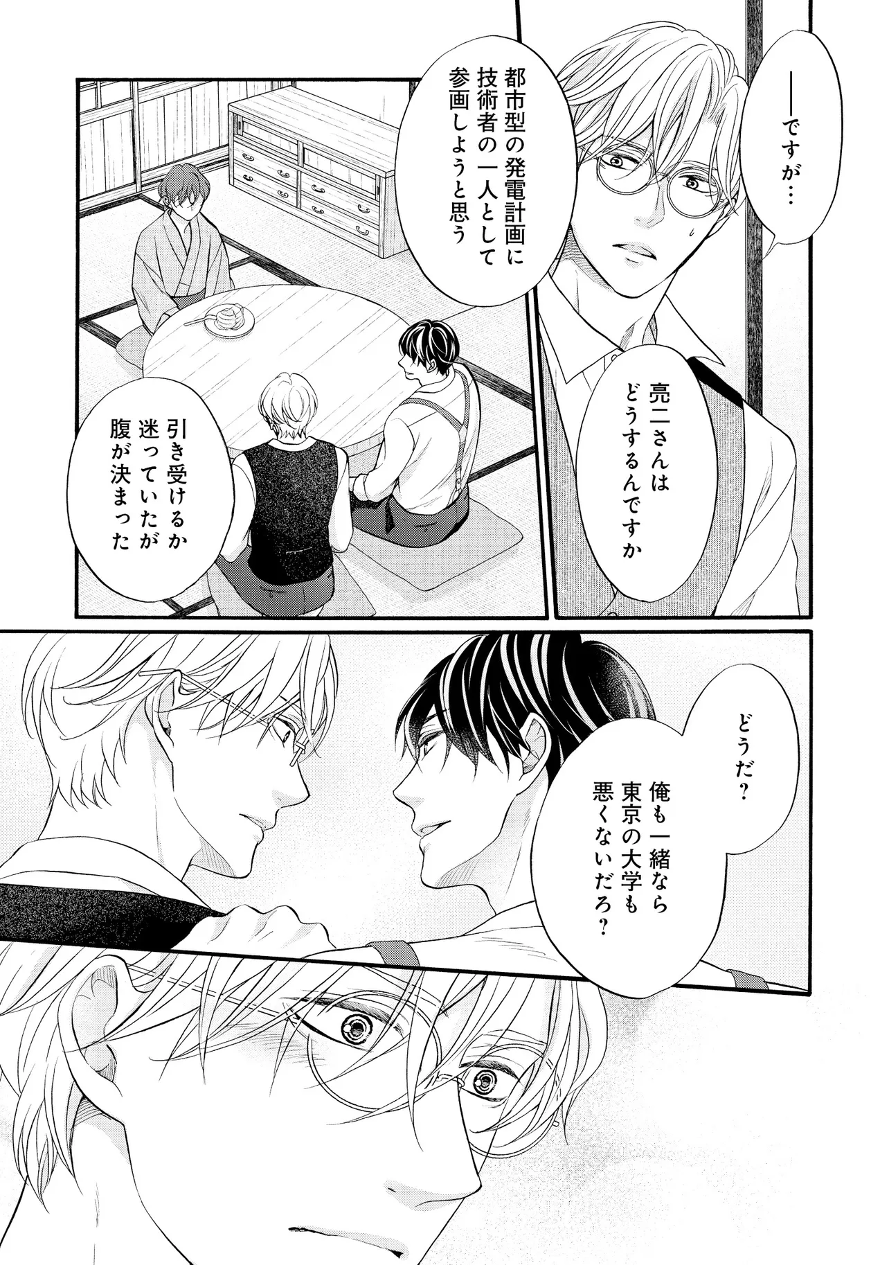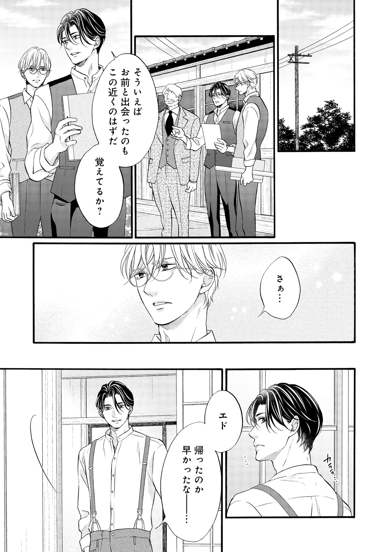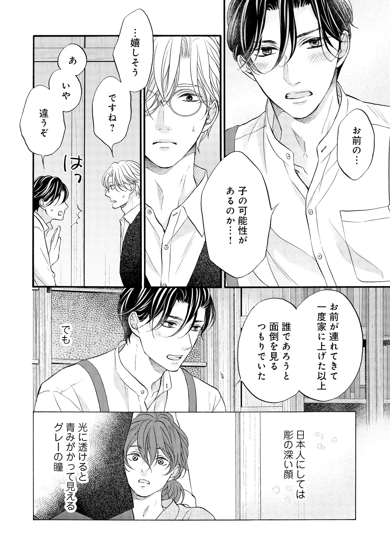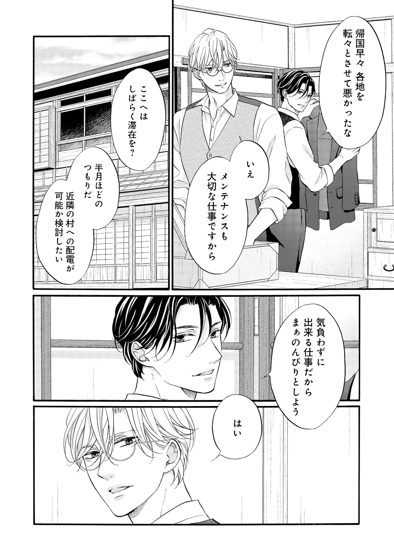 明治従属タングステン 帰国編(1) 明治従属タングステン 投稿者 admin - 2年 前に 幸せな読書漫画 明治従属タングステン 帰国編(1) , いいねと共有ボタンをクリックすることを忘れないでください. Manga 明治従属タングステン 常に更新されます 無料コミック Comic Top. 他のマンガの更新を読むことを忘れないでください。 マンガコレクションのリスト 無料コミック Comic Top マンガリストメニューにあります. お友達と共有しましょう! Facebook Twitter Pinterest Whatsapp 前のエピソード すべての章 次のエピソード リスト ページング Loading.. 前のエピソード すべての章 次のエピソード リスト ページング お友達と共有しましょう! Facebook Twitter Pinterest Whatsapp お気に入りに追加に続く 0 人 明治従属タングステン ――明治末期。 日露戦争後の電力需要の拡大を受け、欧州帰りの佐伯亮二は、 地方の水力発電所の計画技師として参画し、忙しい毎日を送っていた。 彼の傍らに居るのは、忠実な助手・エドワード。 2年前に、“言葉も話せぬ阿呆の人夫”として働いているのを見つけ、 世話してやったのが始まりだった。 二人の主従関係は、少しずつ変化を見せていて――…。 たつもとみお(著者) 20代受け20代攻めBLforgirlsゲイ受けトラウマノンケ攻めメガネ攻め下剋上主従外国人攻め幕末から昭和モノ料理ができる攻め男の子の事情男前受け硬派受け黒髪受け